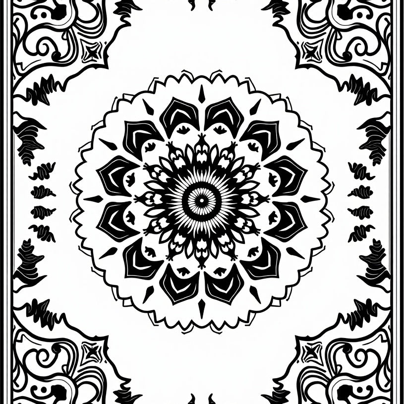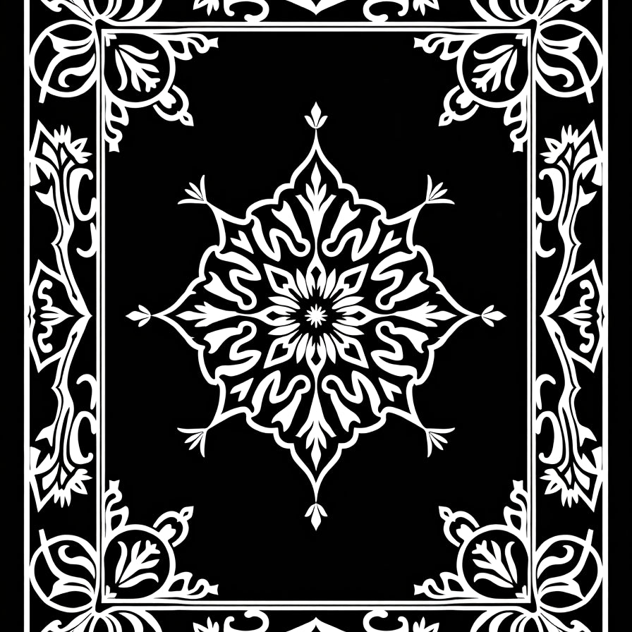 Celestial Medallion with Ornate Floral Motifs and Intricate Scrollwork (Black)
