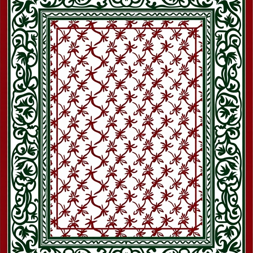 Floral Trellis Featuring Detailed Leaf And Interlocking Scrollwork (Red)