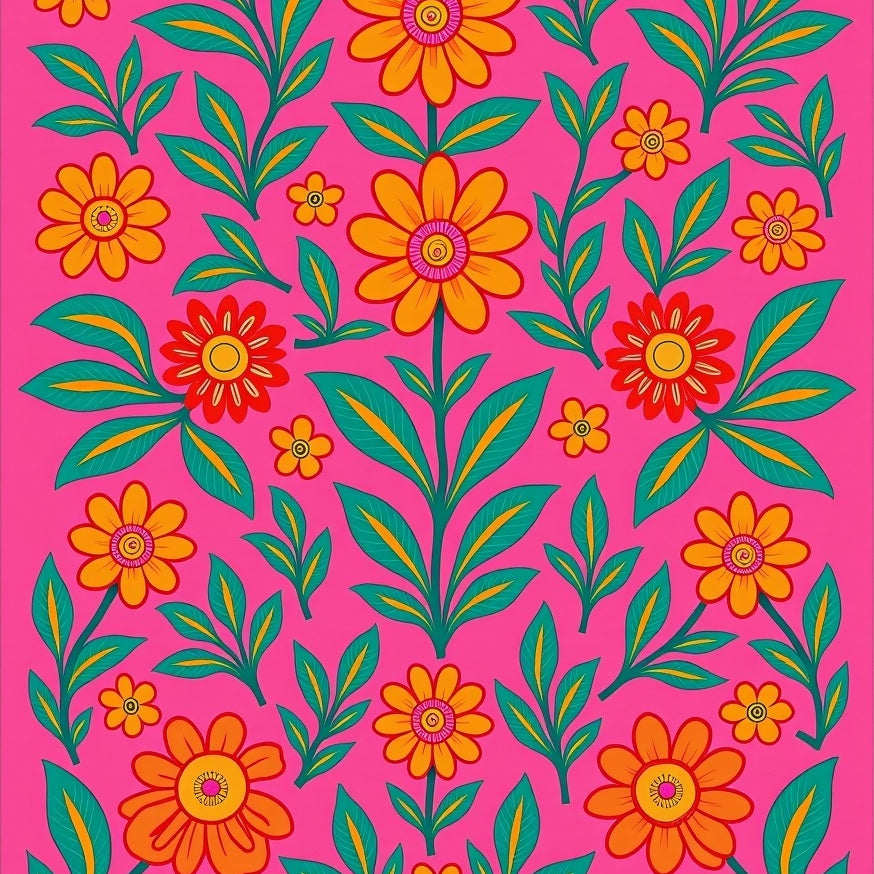 Mystic Garden with Interlocking Floral Tapestry and Whimsical Swirls (Pink)