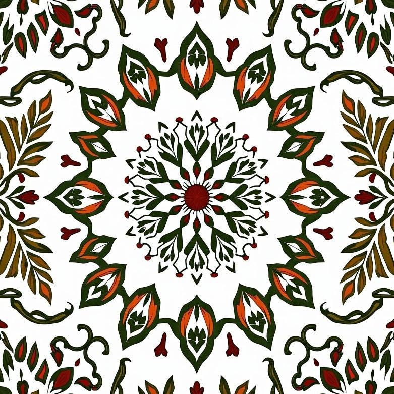 Vintage Floral Damask with Ornate Botanical Motifs (Red)