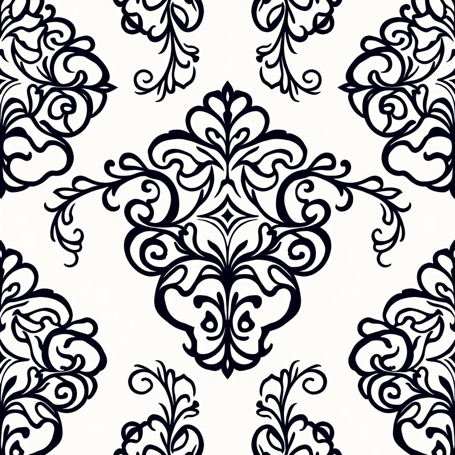 Damask Floral Vine Motif with Classical European Elegance (Black)