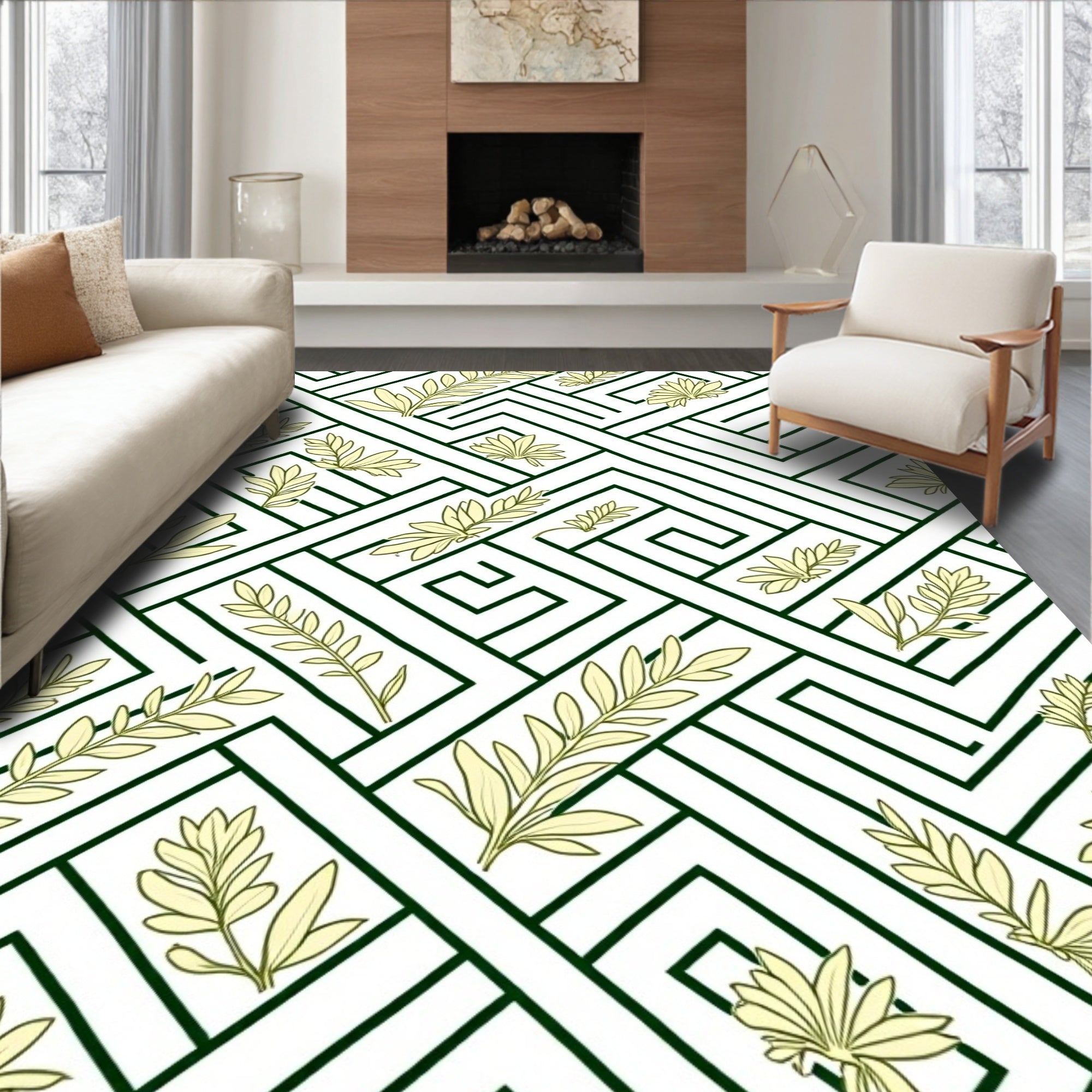Floral Inspired with Non Slip Backing and Boho Charm(Green)