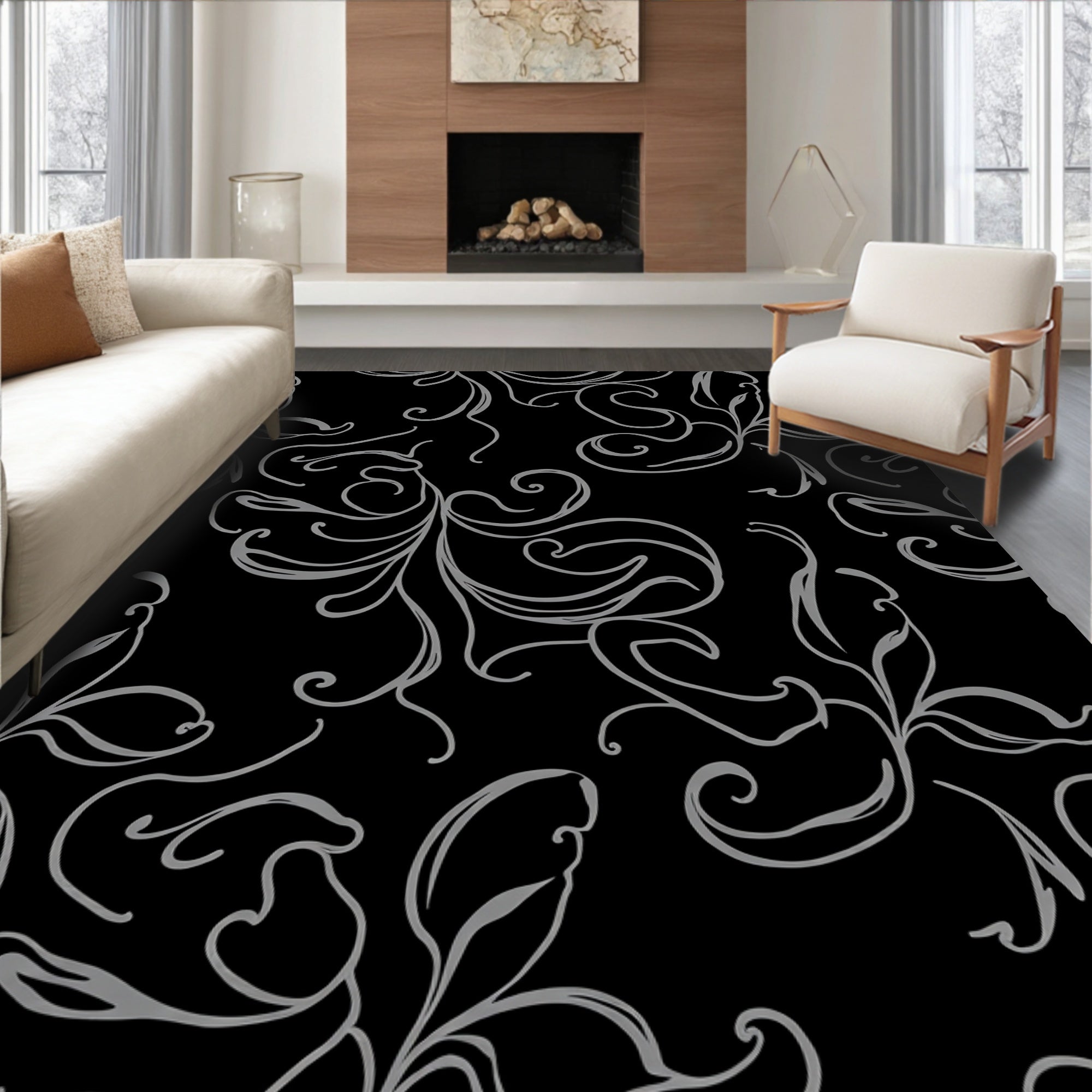 Elegant Foyer with Interwoven Floral and Scroll (Black)