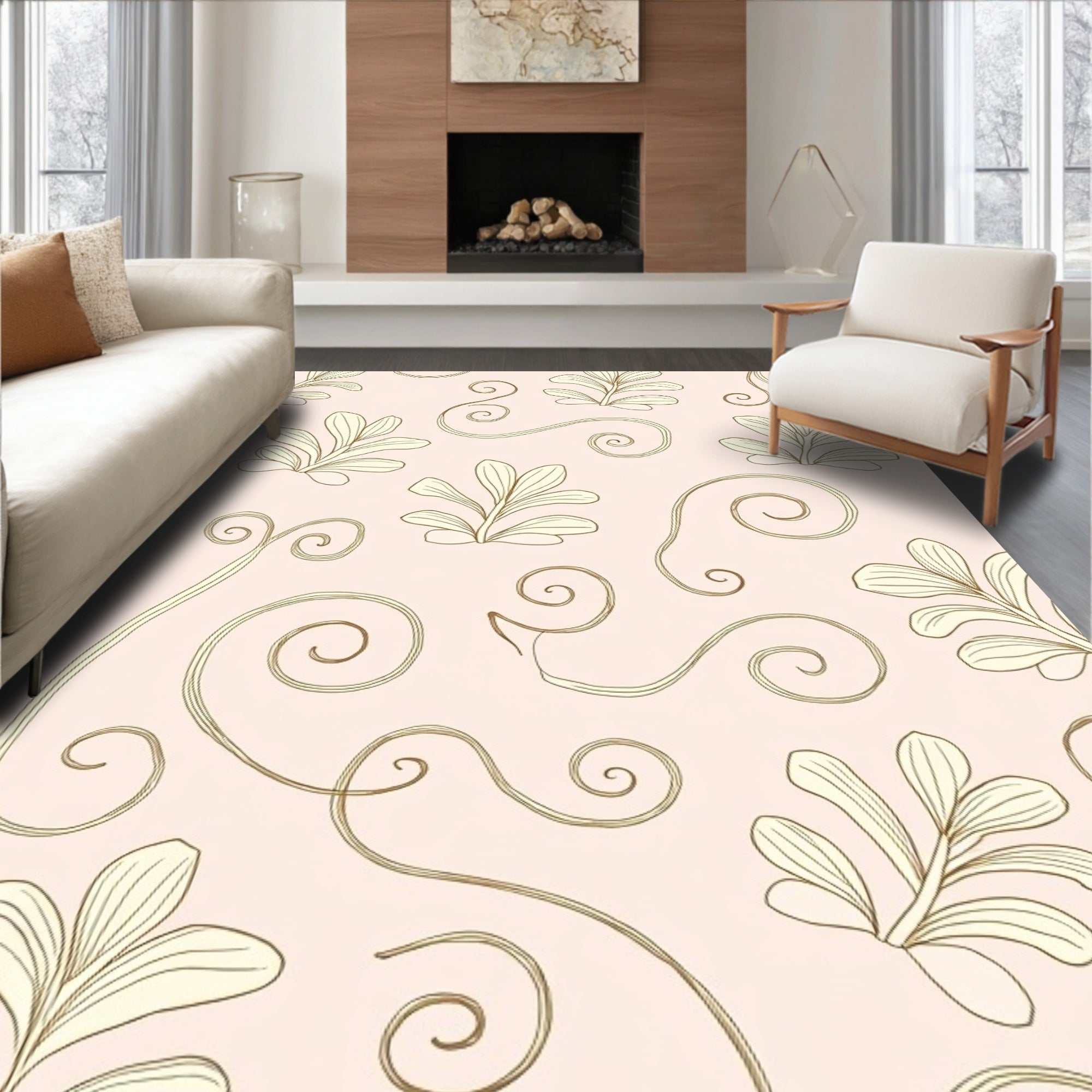 Elegant Swirling Motifs with Intricate Floral Detailing and Curved Lines (Beige)