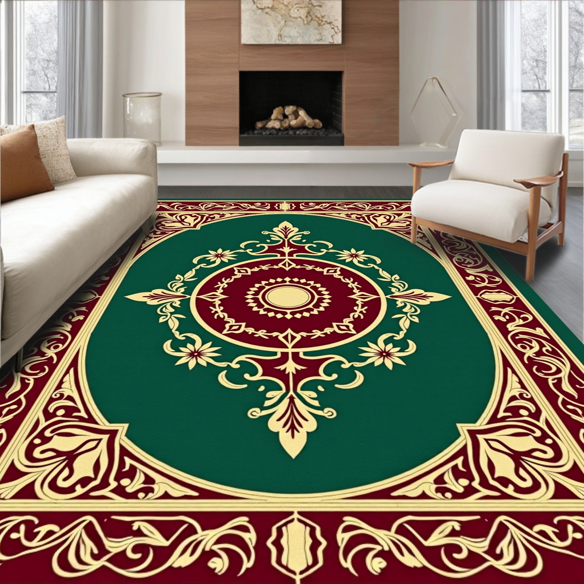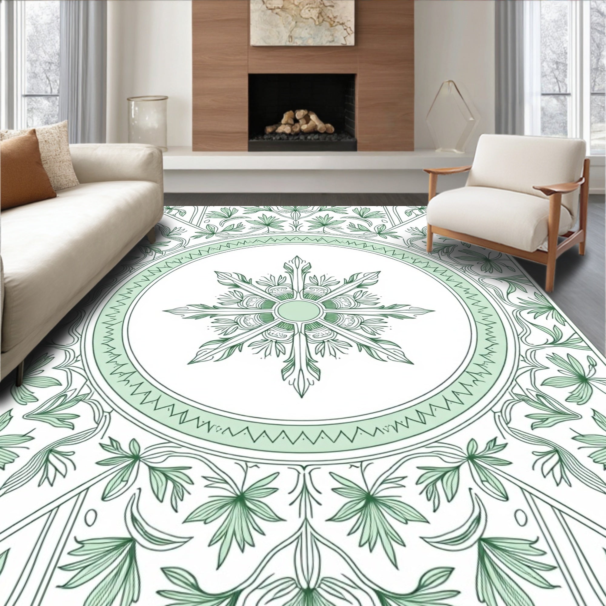 Victorian Scrollwork Medallion with Floral Accents(Green)