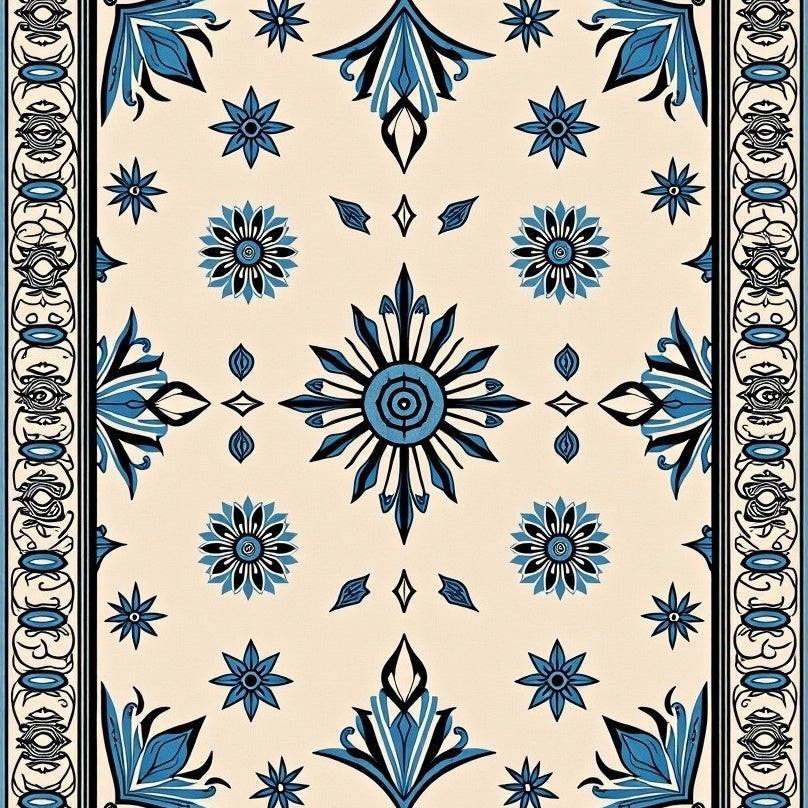 Interlocking Medallion with Subtle Floral Accents(Blue)
