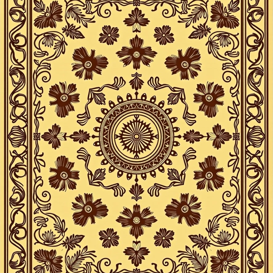 Vintage Medallion Scrollwork Interlocking Floral(Brown)