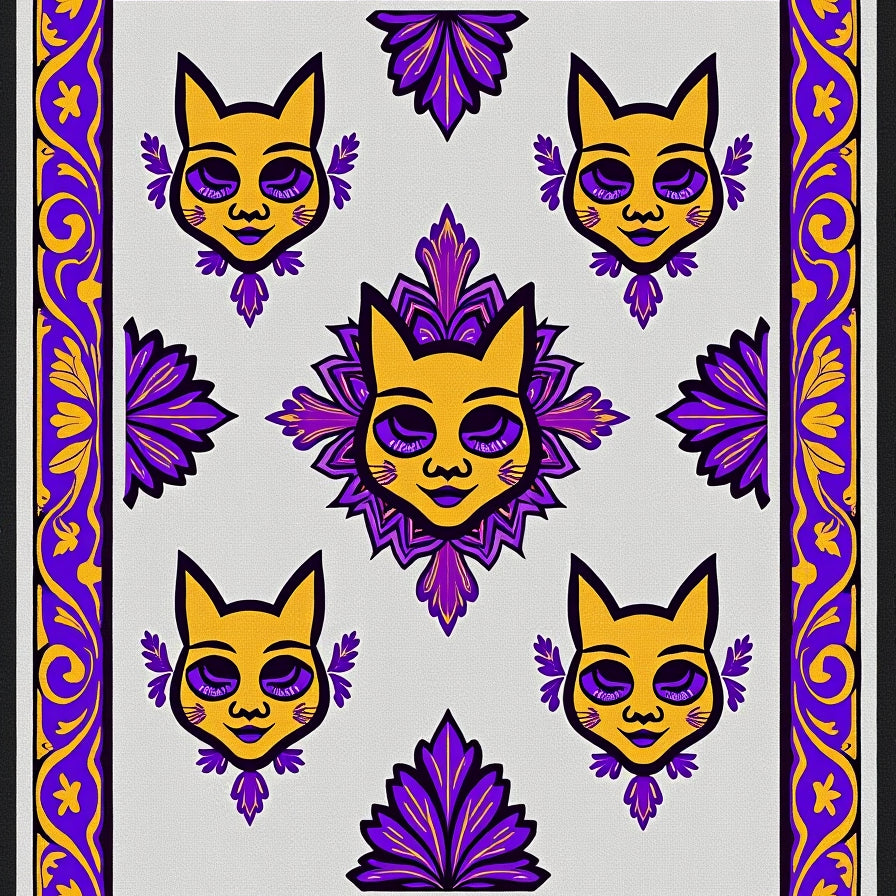Mystic Halloween Cat Parade with Ornate Floral Scrollwork(Pink)