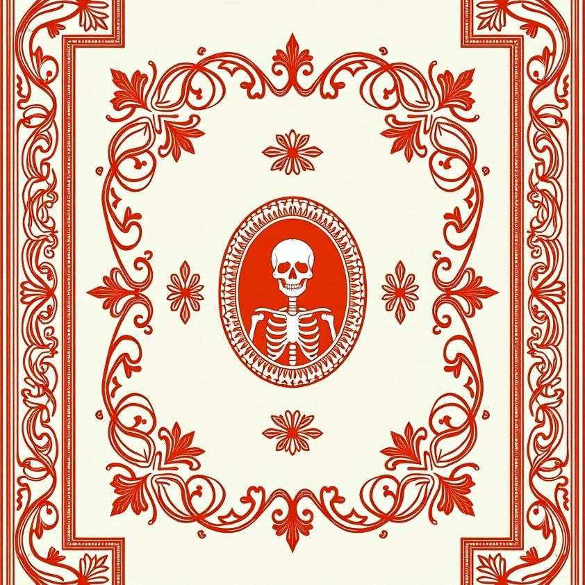 Vintage Skeleton Cameo with Ornate Floral Scrolls(Red)