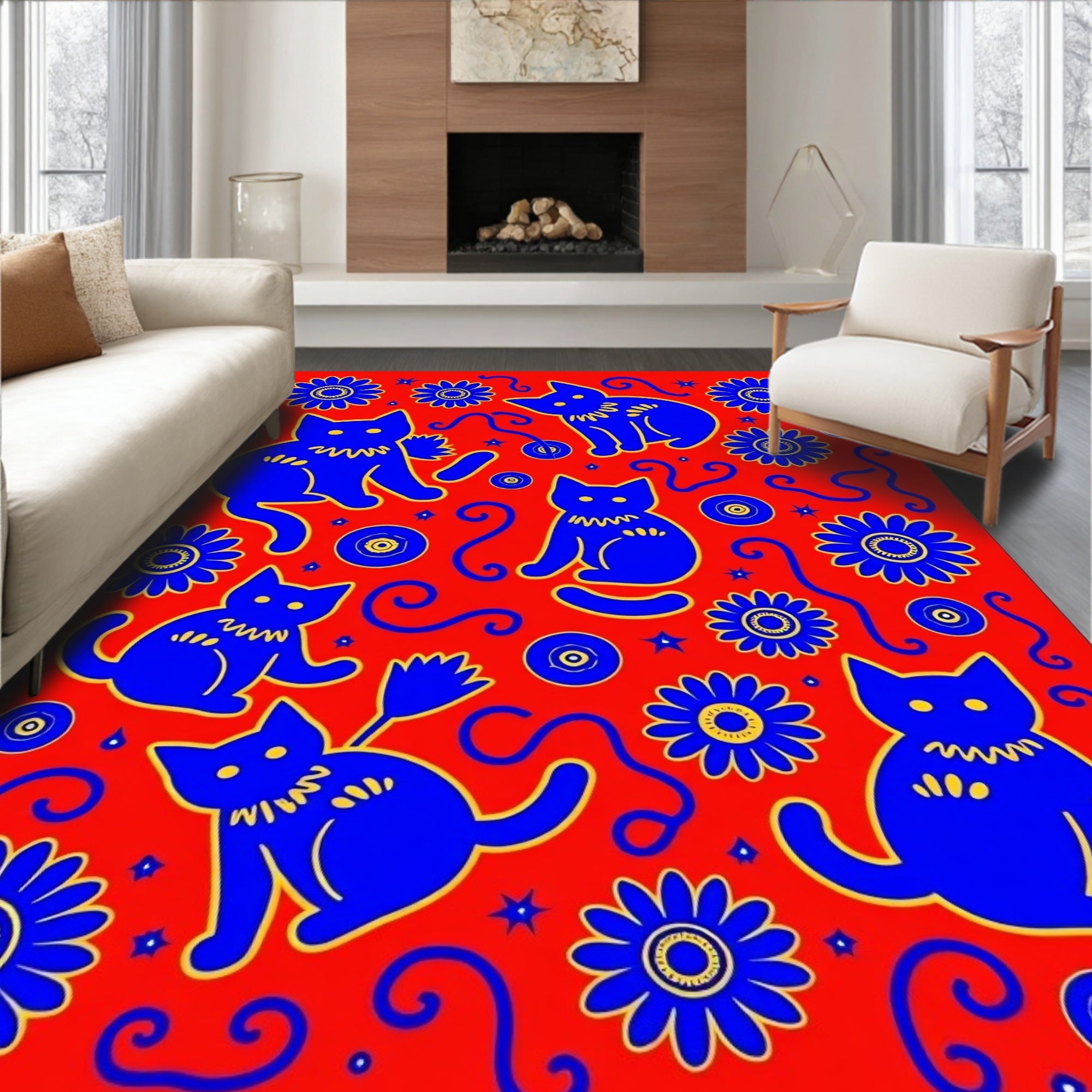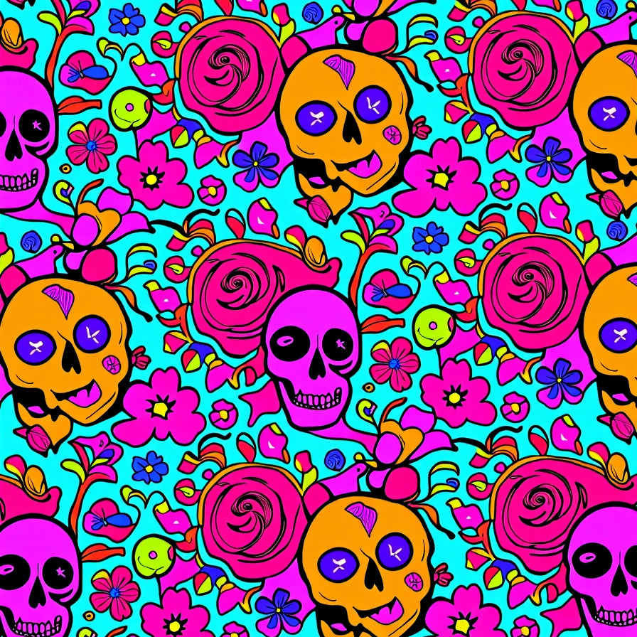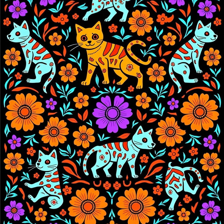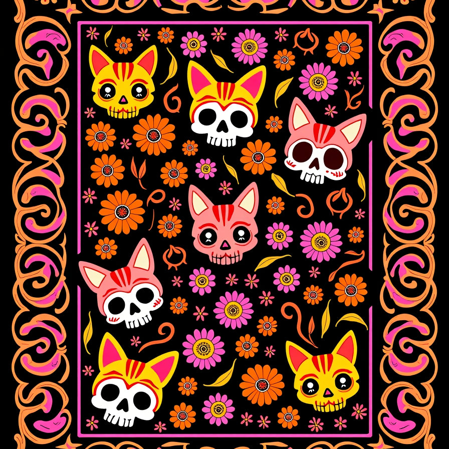 Semicircular Featuring Festive Cat Skulls and Vibrant Floral Motifs(Pink)