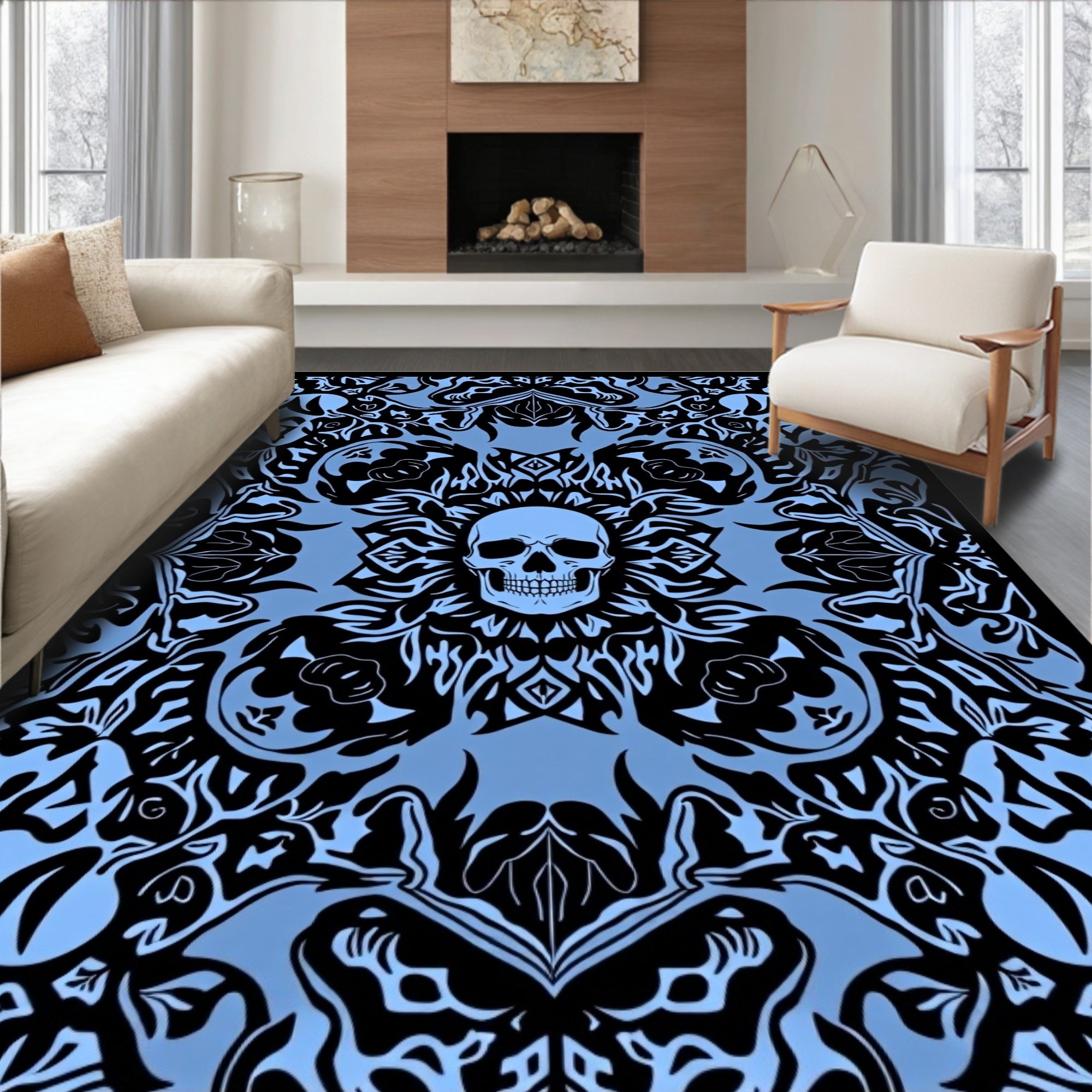 Ornate Sugar Skull Floral Area with Intricate Day of Dead Motifs(Black)