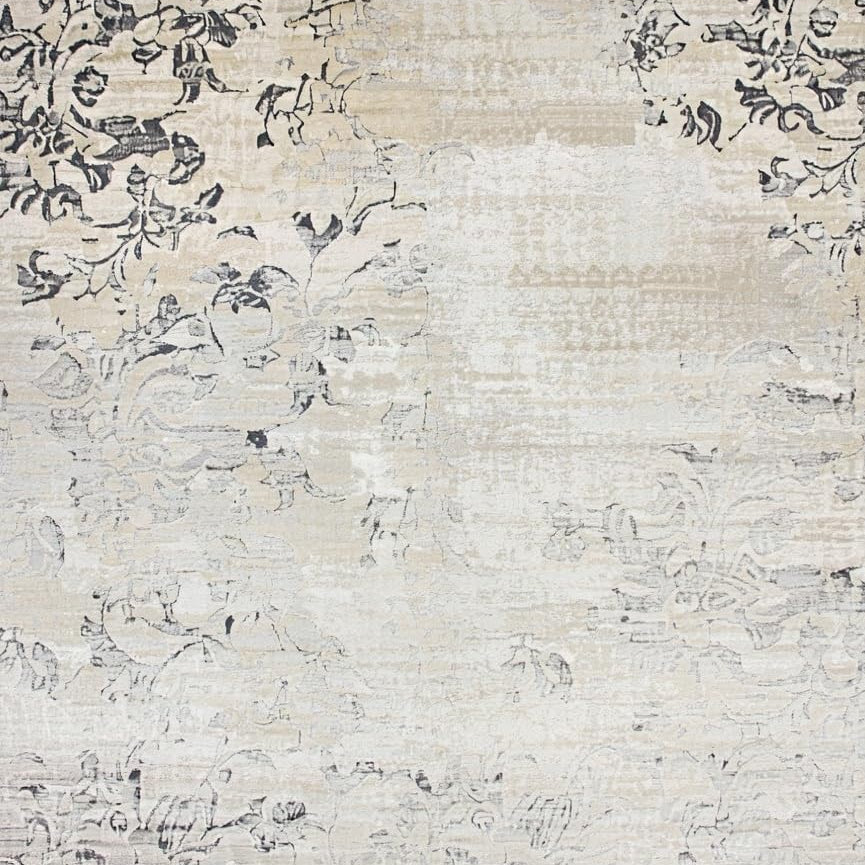 Modern Beige and Smoke Swirl with Abstract Floral Motifs(Beige)