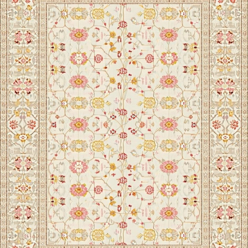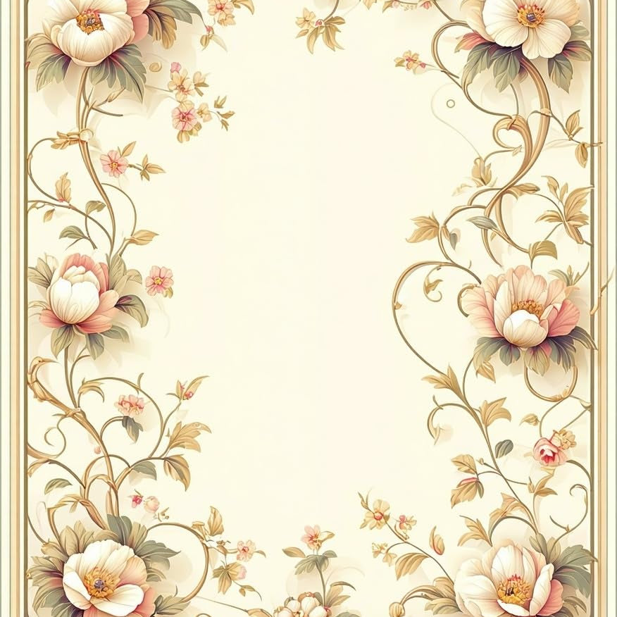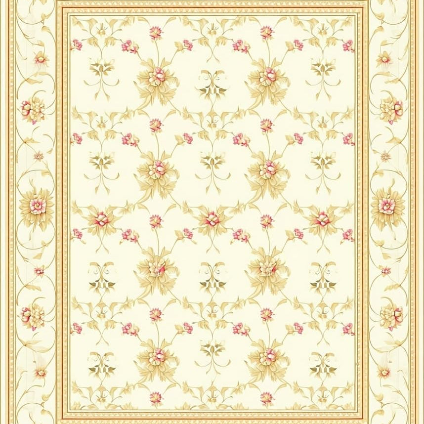 Timeless Beige with Floral Borders Traditional Geometry(Beige)