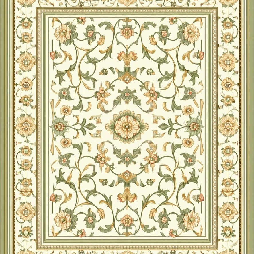 Heirloom Quality Sage Beige Traditional Floral Motif Area(Beige)
