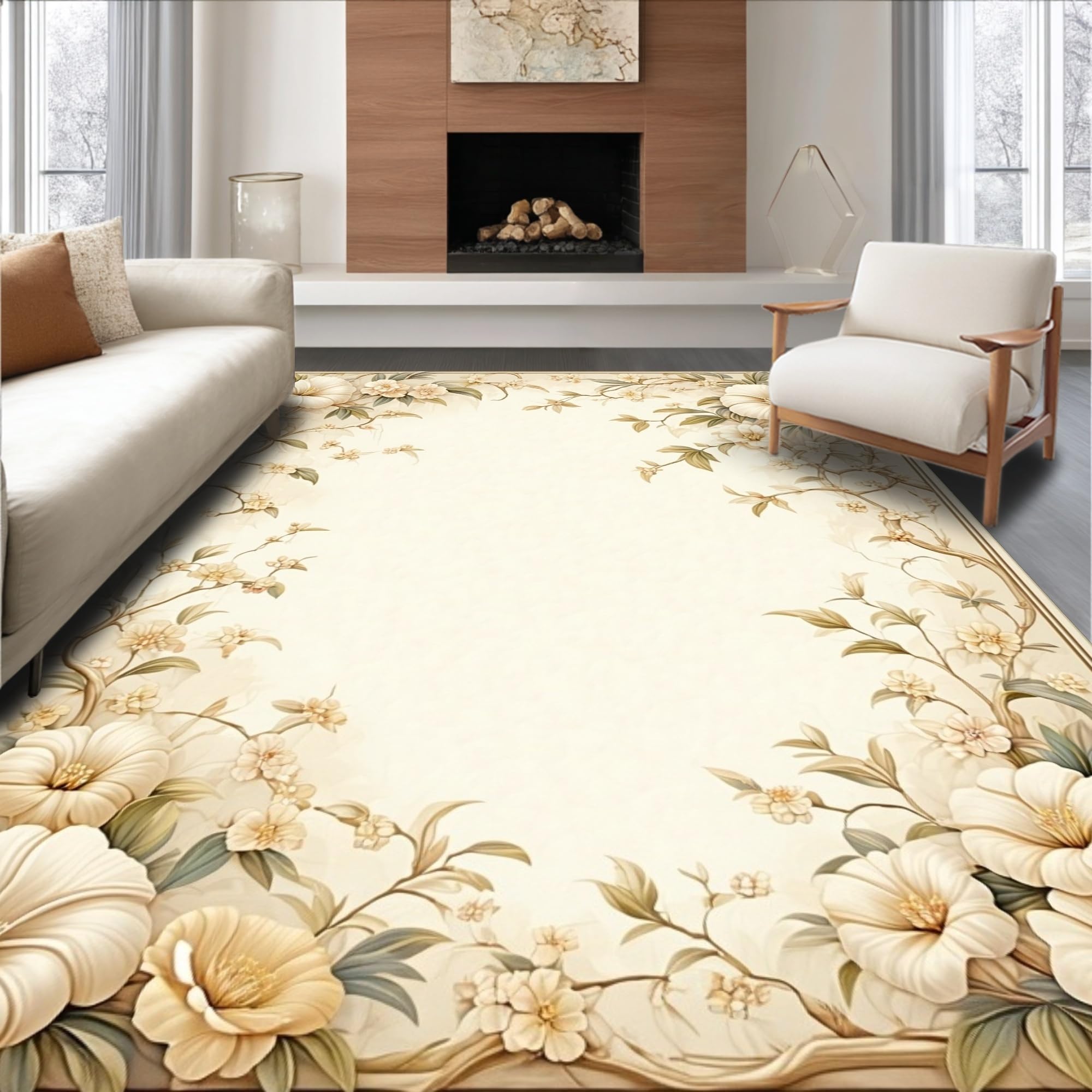 Pastoral Charm Beige Area Refined Cottage Floral(Beige)