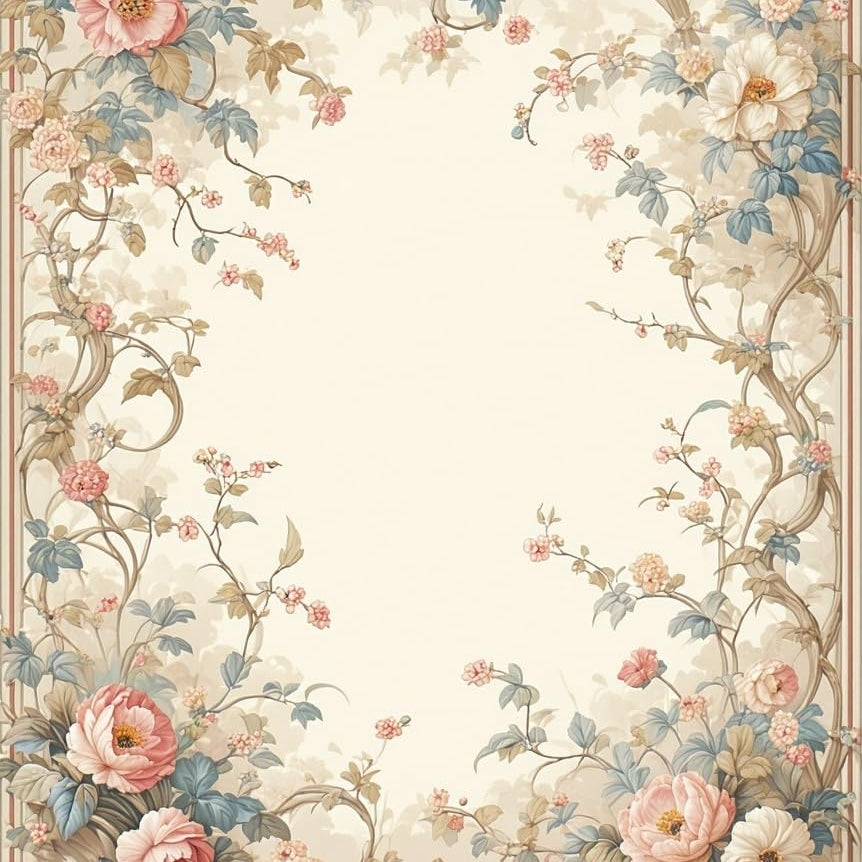 Vintage Inspired Floral with Elegant Arabesque Borders and Neutral Hues(Beige)