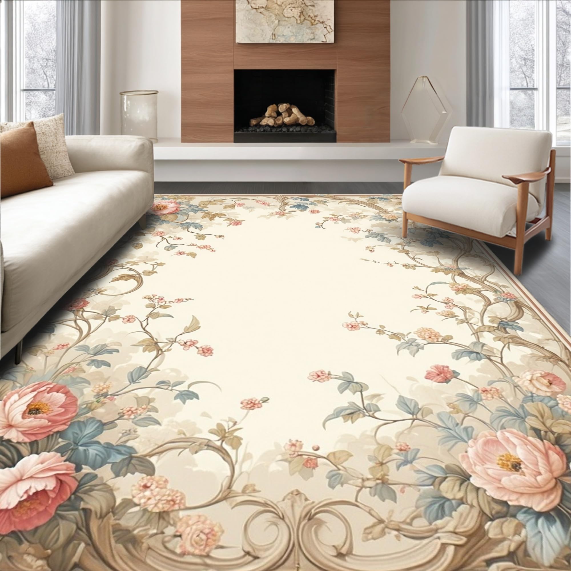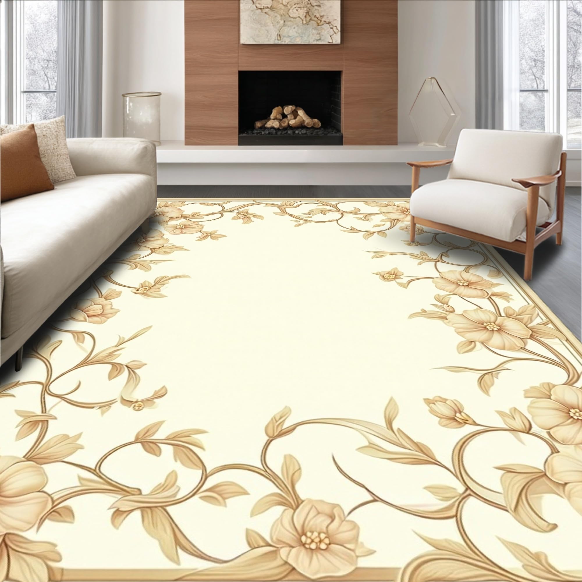 Elegant Entryway Cream Beige Area with Delicate Floral Motif(Beige)