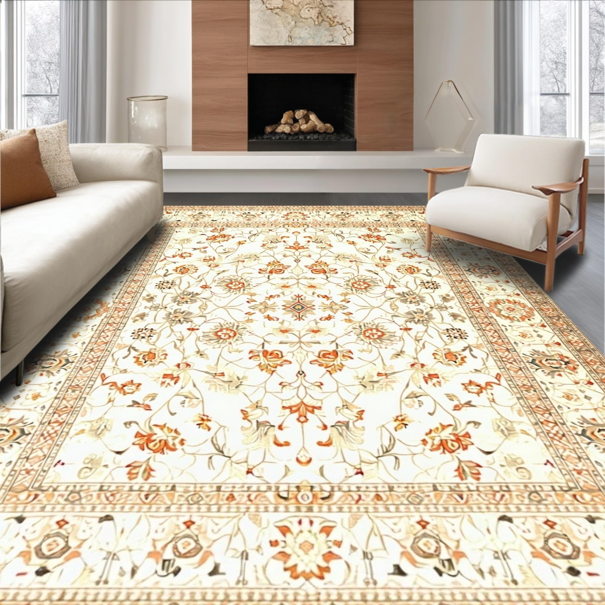 Heritage Bloom Vintage Area Elegant Beige Floral Cottage(Ivory)