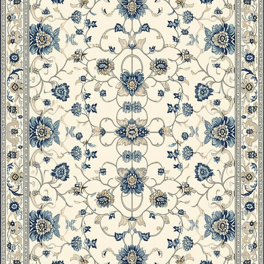 Sophisticated Area Featuring Elegant Beige and Blue Floral Designs(Beige)