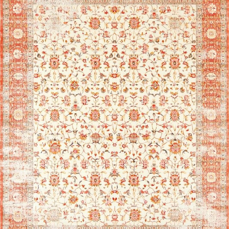 Classic Vintage Area Cream and Terracotta Floral(Beige)
