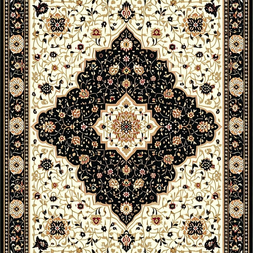 Classic Black and Beige with Refined Oriental Floral Medallions(Beige)