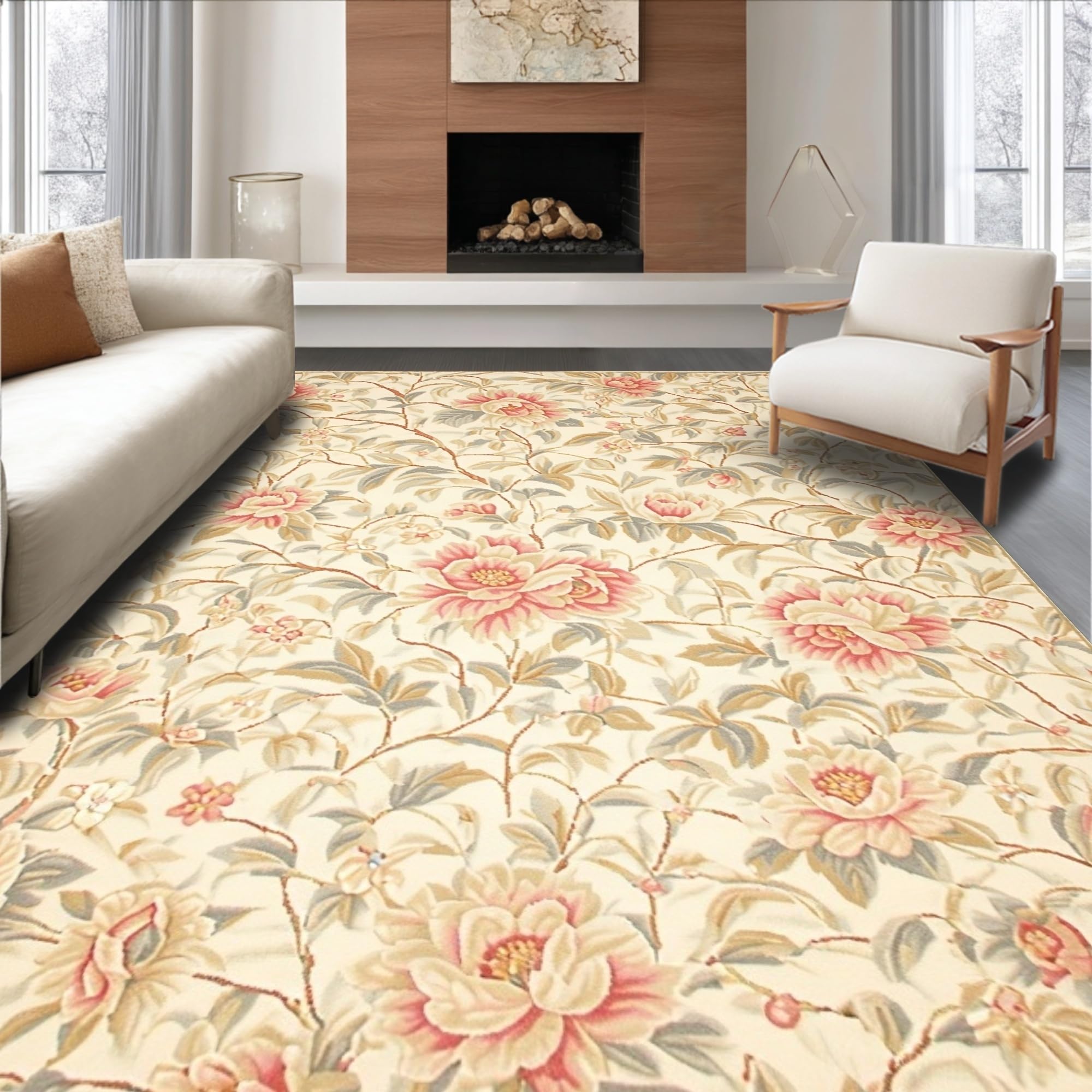 Classic Floral Area Durable Non Slip Indoor(Beige)