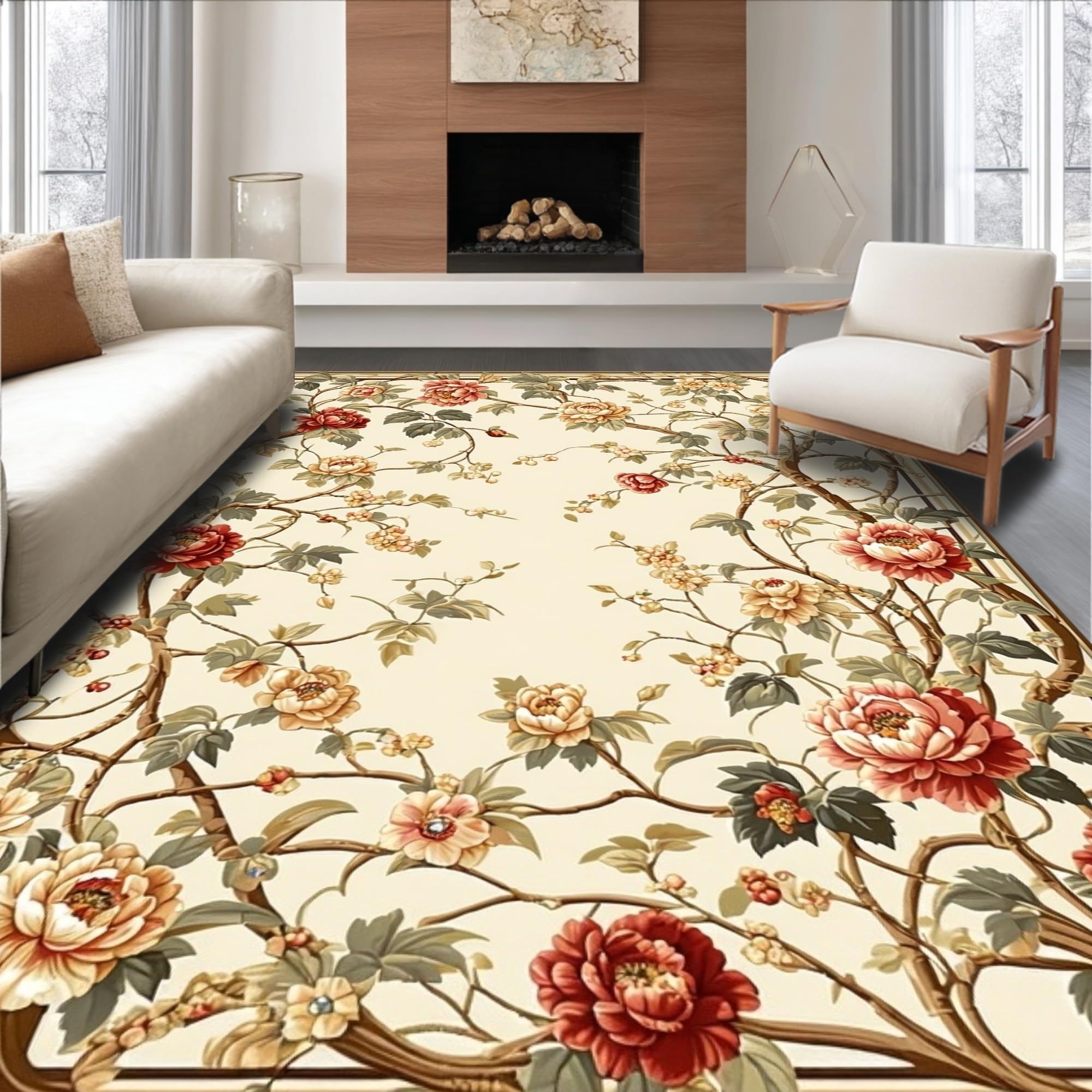 Ornate Garden Bloom Area Vintage Inspired Floral Motif Floor(Beige)