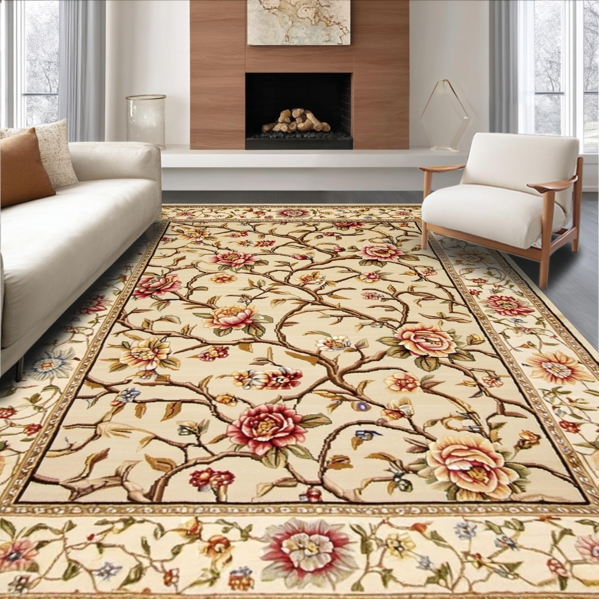 Beige Indoor Area Vintage Floral Accent(Beige)
