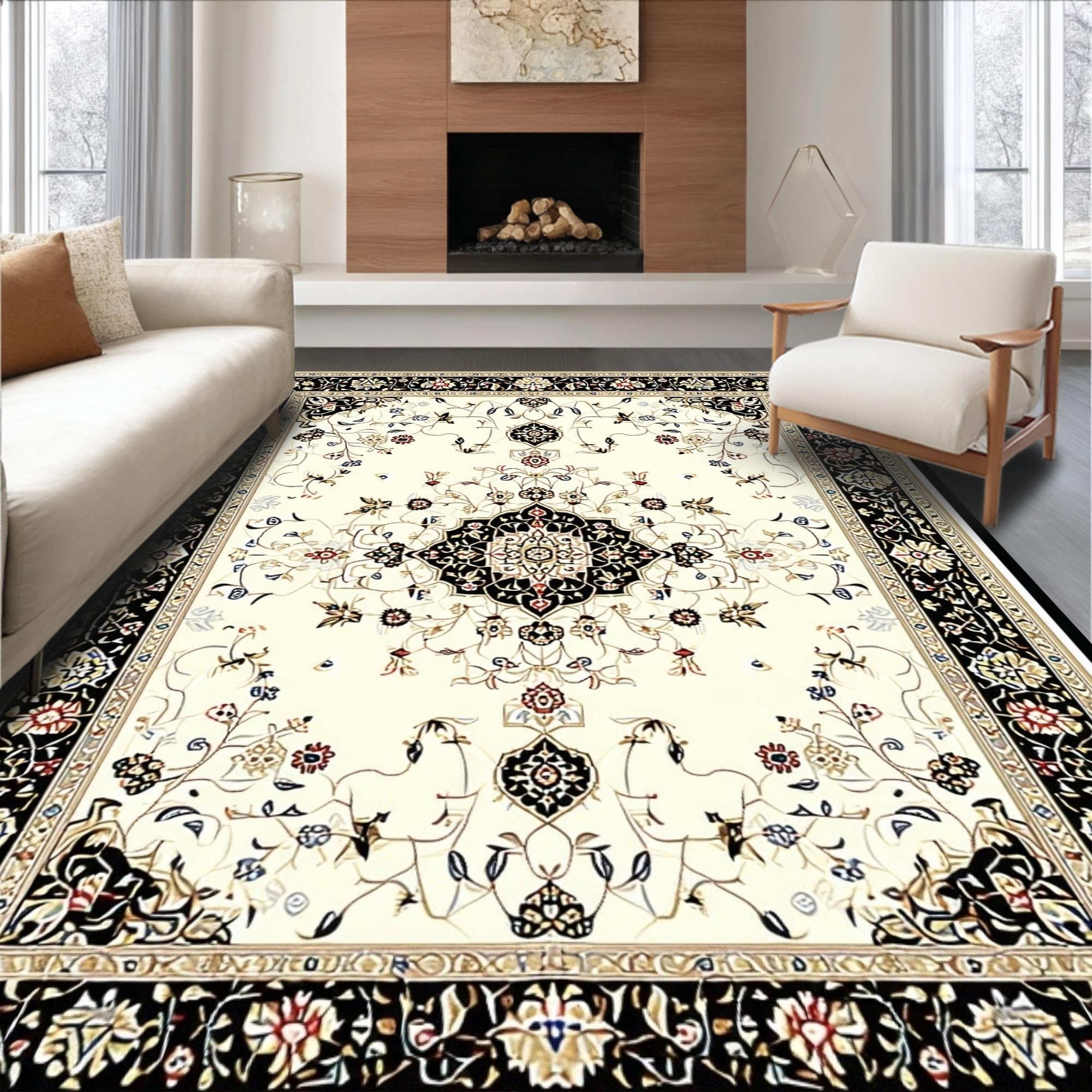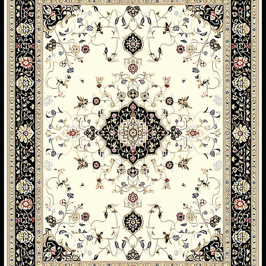 Black and Beige with Vintage Oriental Medallion Floral Accents(Ivory)