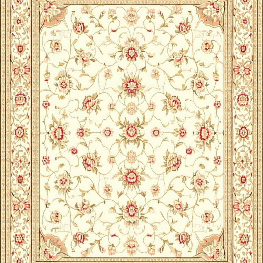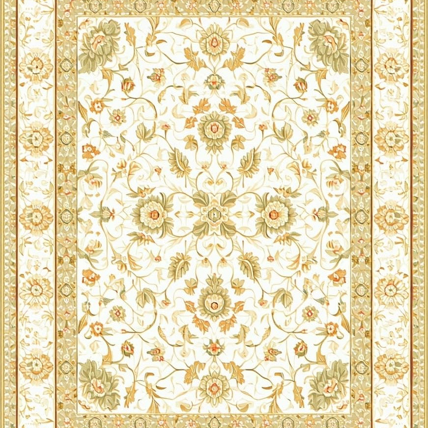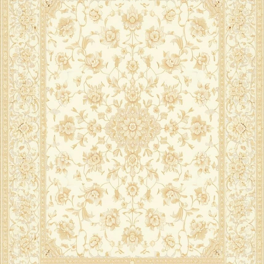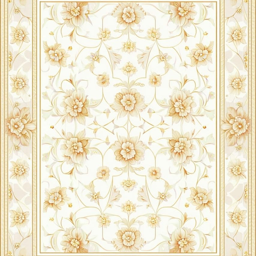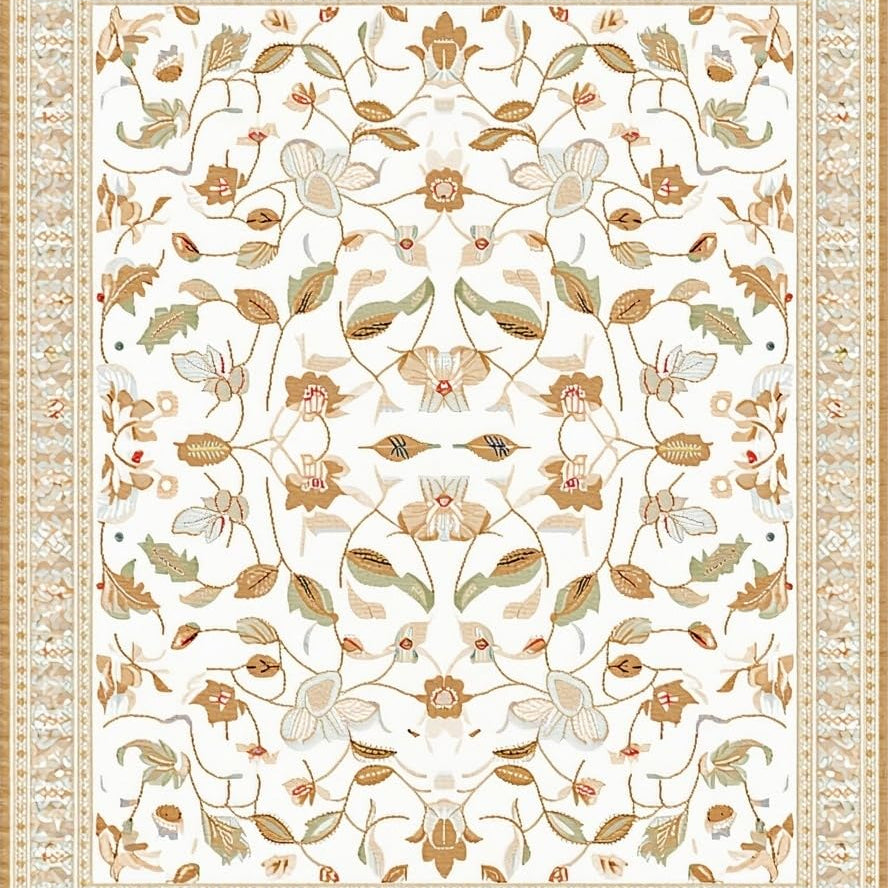 Refined Beige Area Featuring Intricate Floral and Geometric Motifs(Ivory)