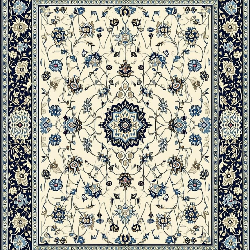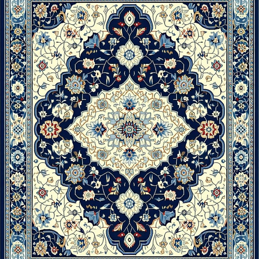 Elegant Medallion Navy Beige Coastal Floral(Ivory)