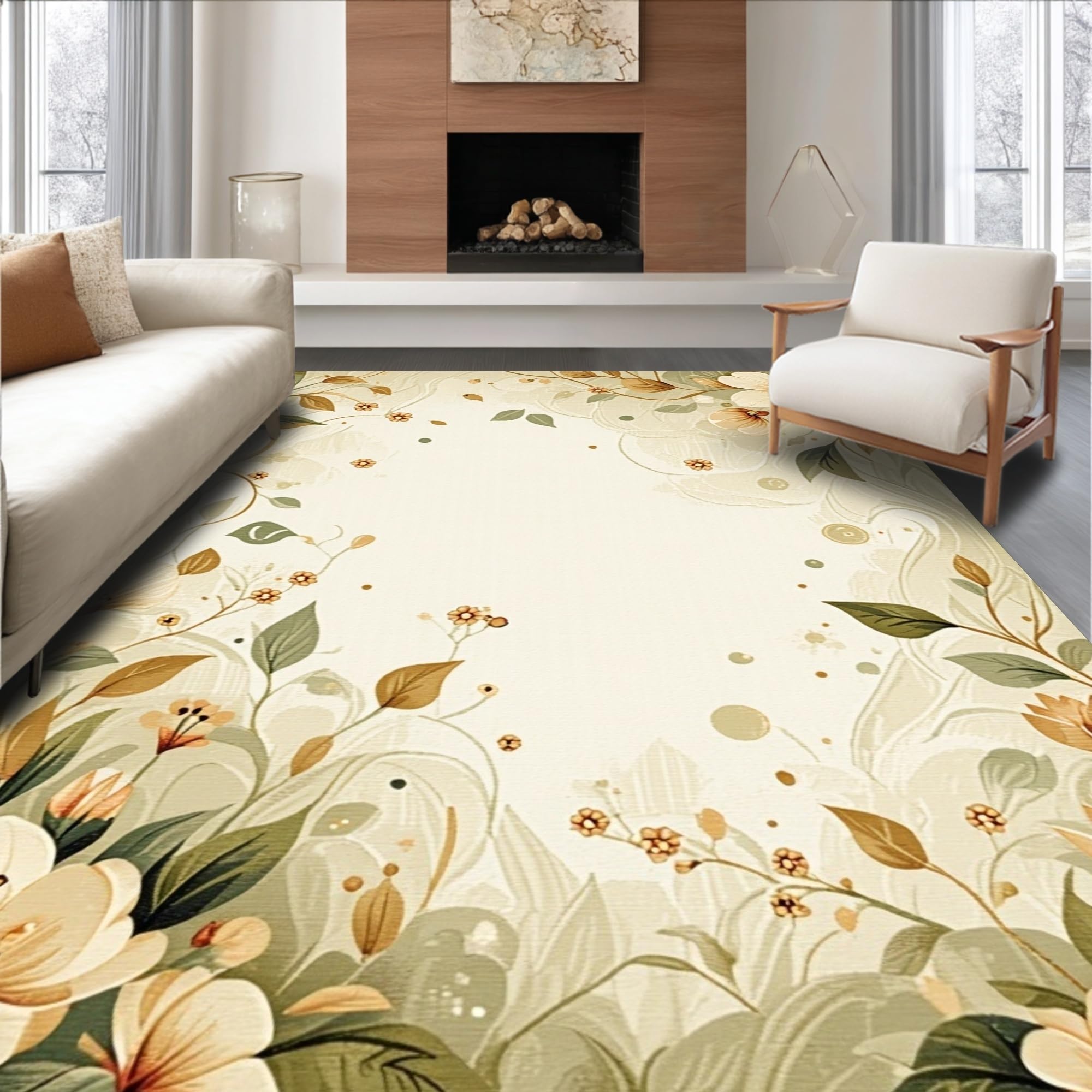 Chic Floral Boho Entryway with Layered Beige and Khaki Petal(Beige)