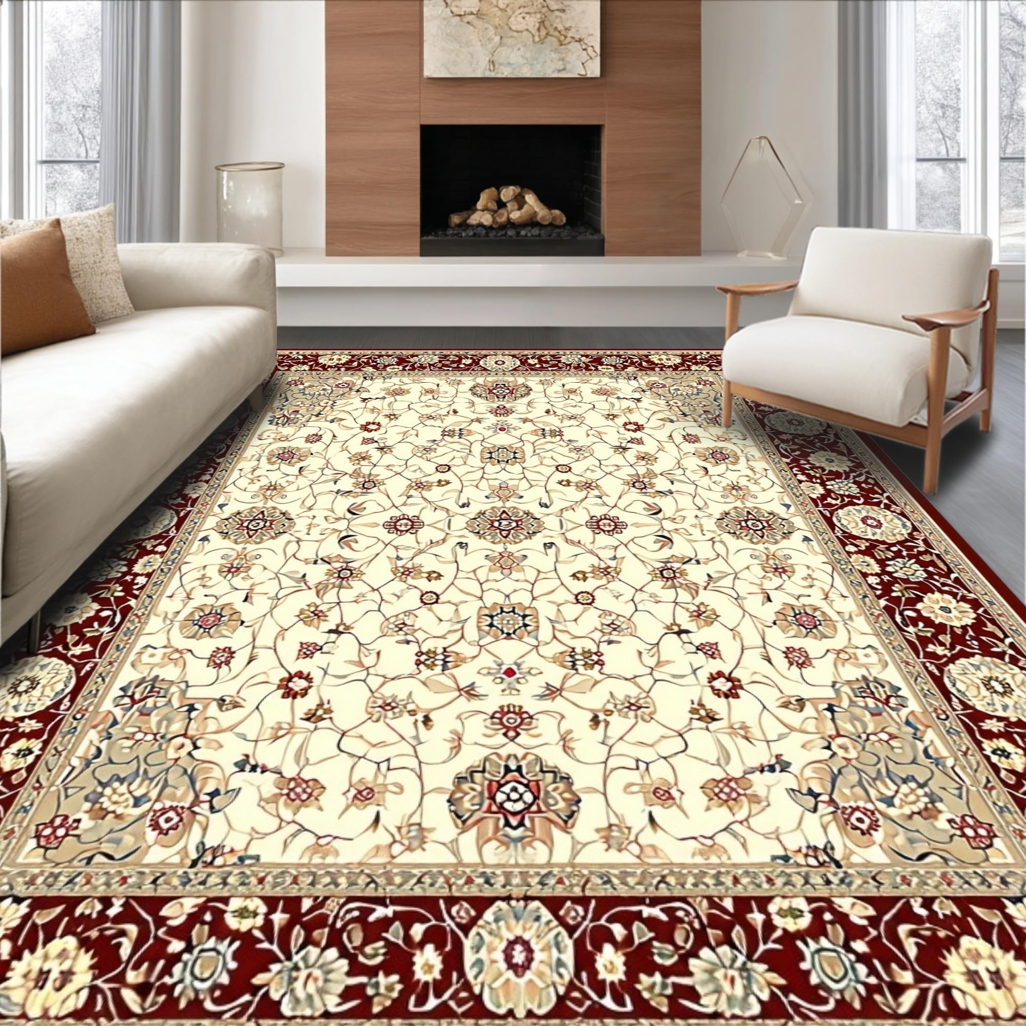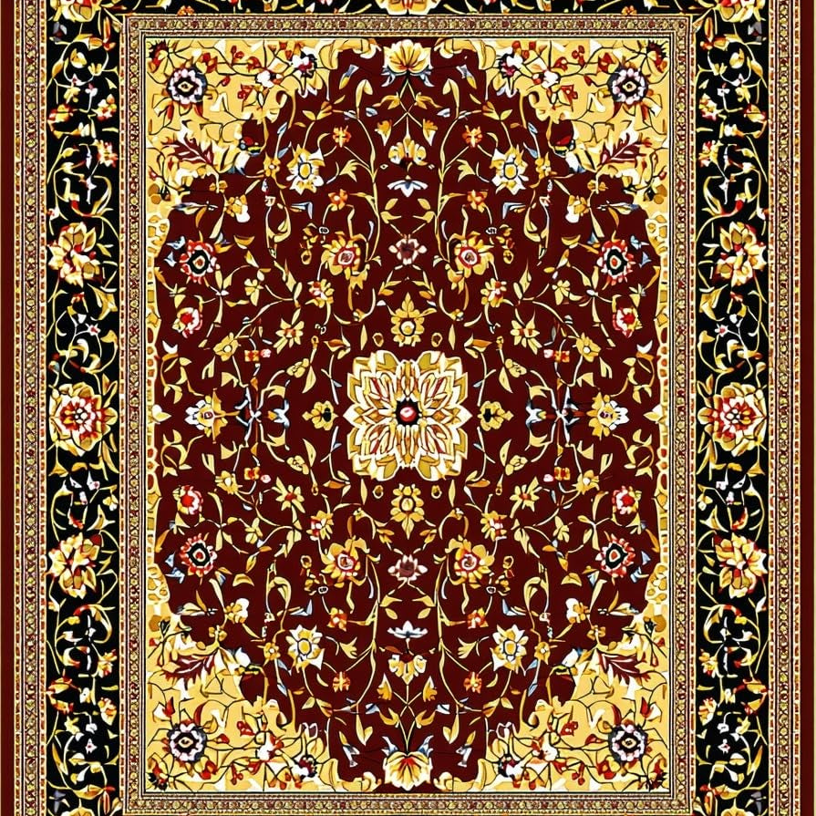 Classic Vintage Floral Area Featuring Burgundy and Mustard Accents(Red)