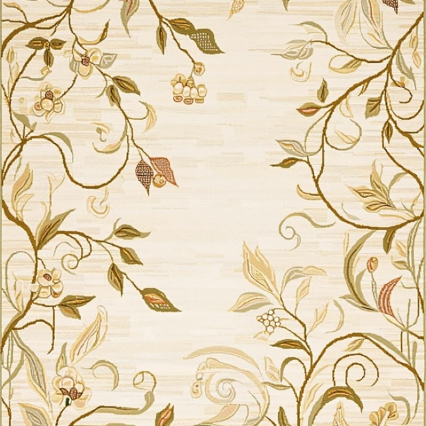 Artistic Floral Area Non Skid Backing Easy Clean Durable Low Pile(Beige)