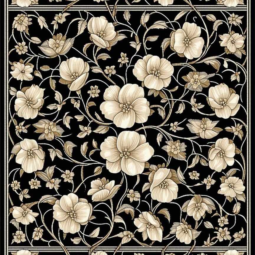 Chic Black and Beige Area with Vintage Floral Accents(Black)