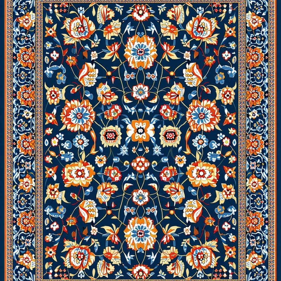 Stylish Area with Elegant Dual Tone Blue and Orange Floral(Blue)