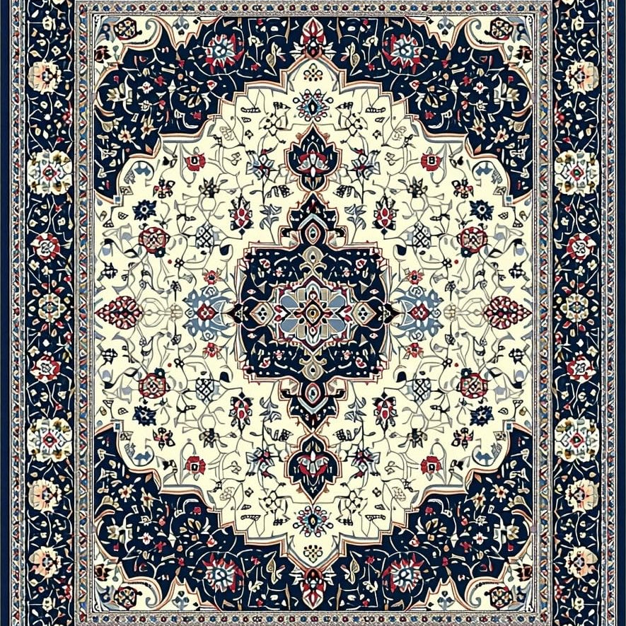 Elegant Medallion Floral Area Navy Beige Non Shedding(Blue)