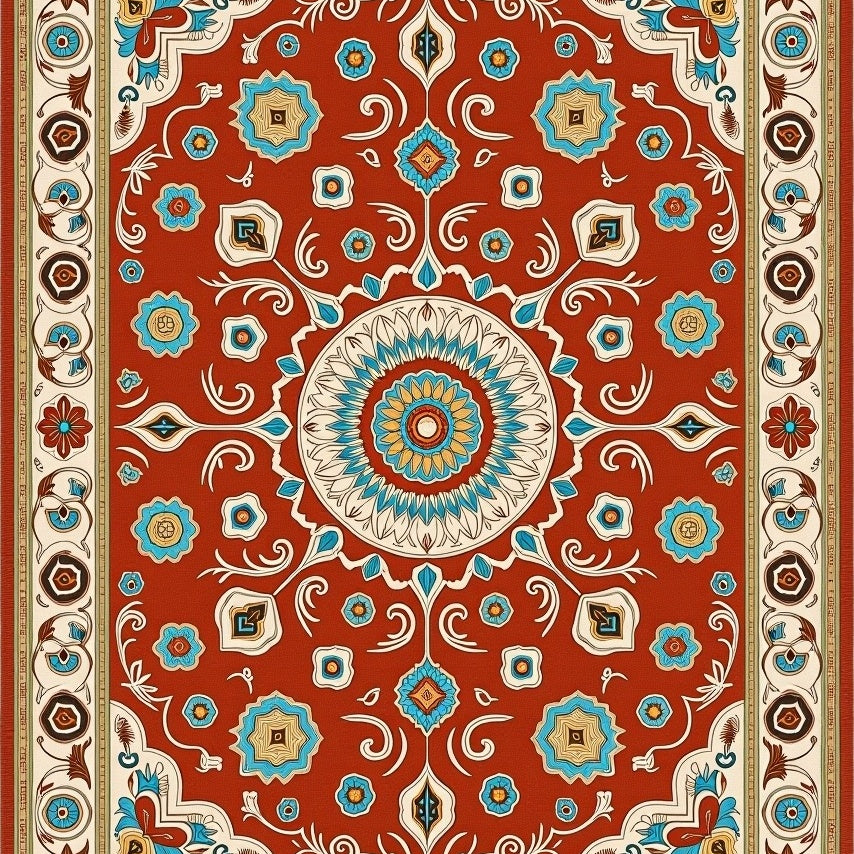 Vintage Distressed Medallion Floral Ornate Heritage Elegant(Red)