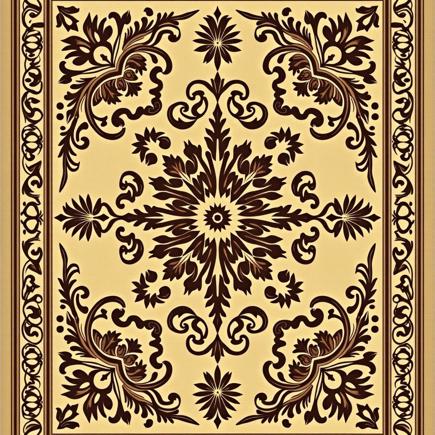 Burst Symmetrical Medallion with Ornate Floral(Brown)