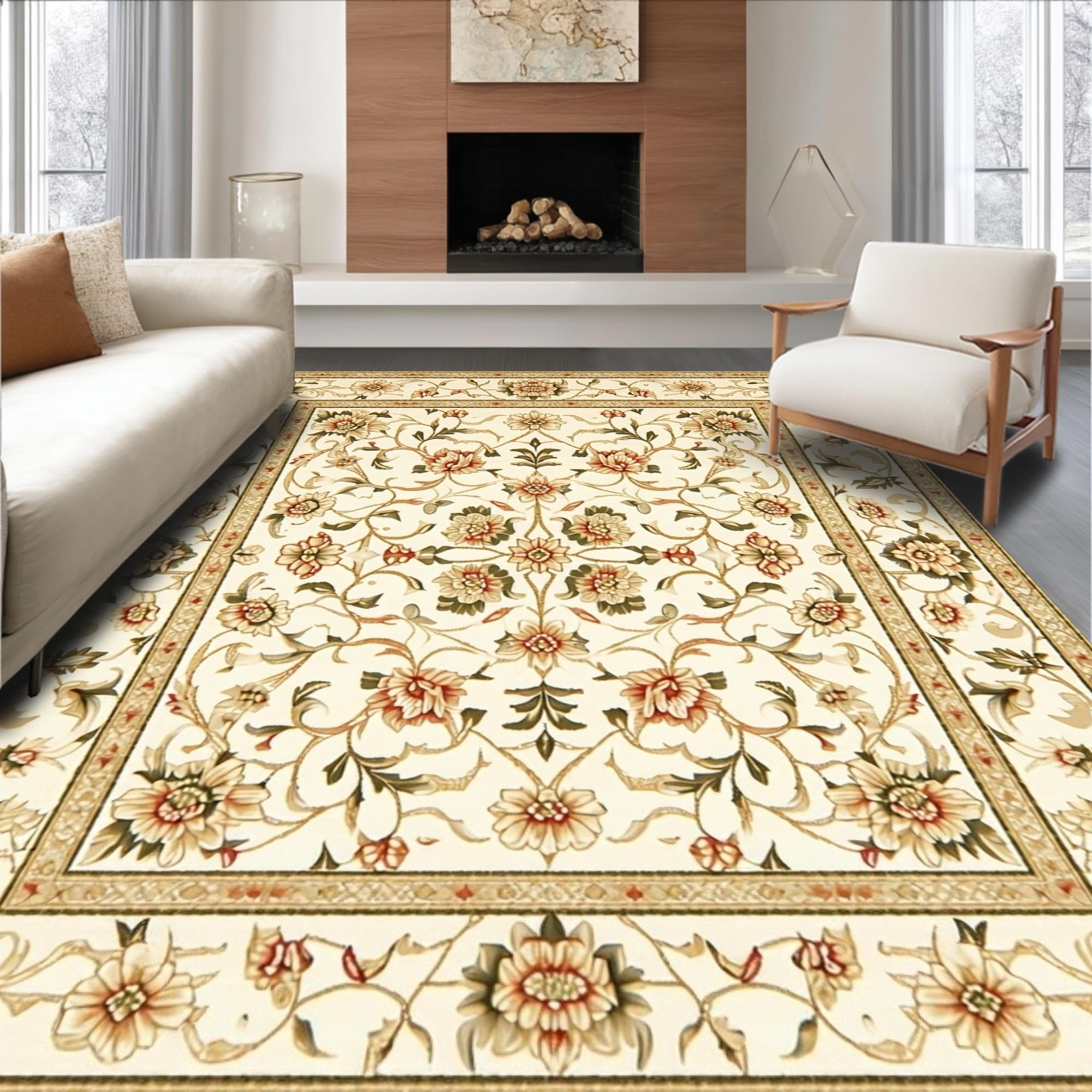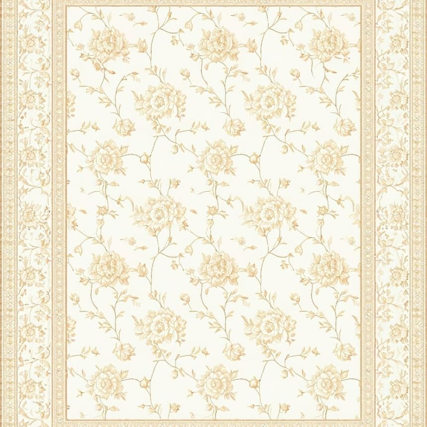 Vintage Inspired Floral Area Non Slip Elegant Design(Beige)