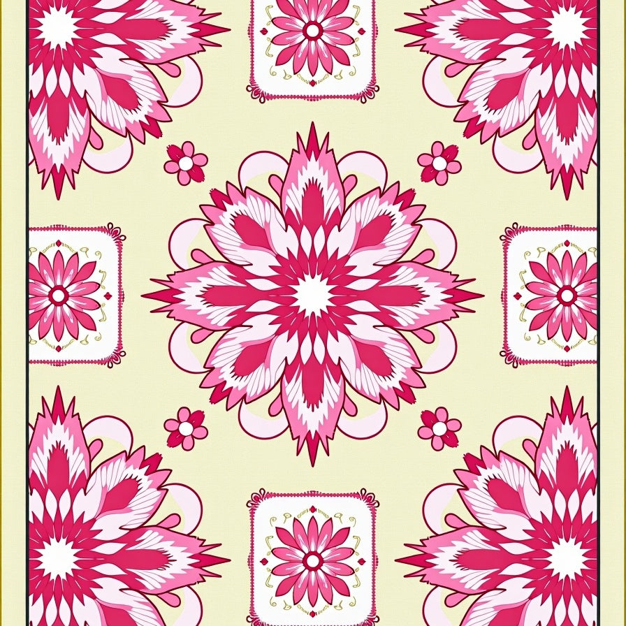 Floral Medallion with Ornate Symmetry and Detailed Petal Arrangements(Pink)