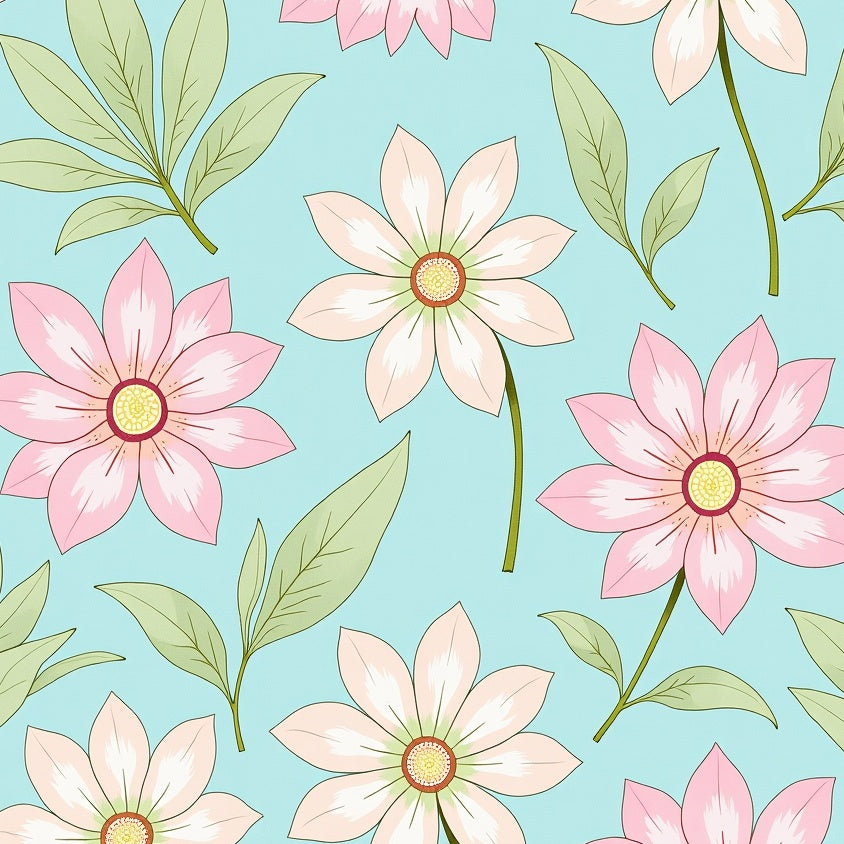 Retro Floral Medley with Interlocking Palmetto and Blossom Motifs(Mint)