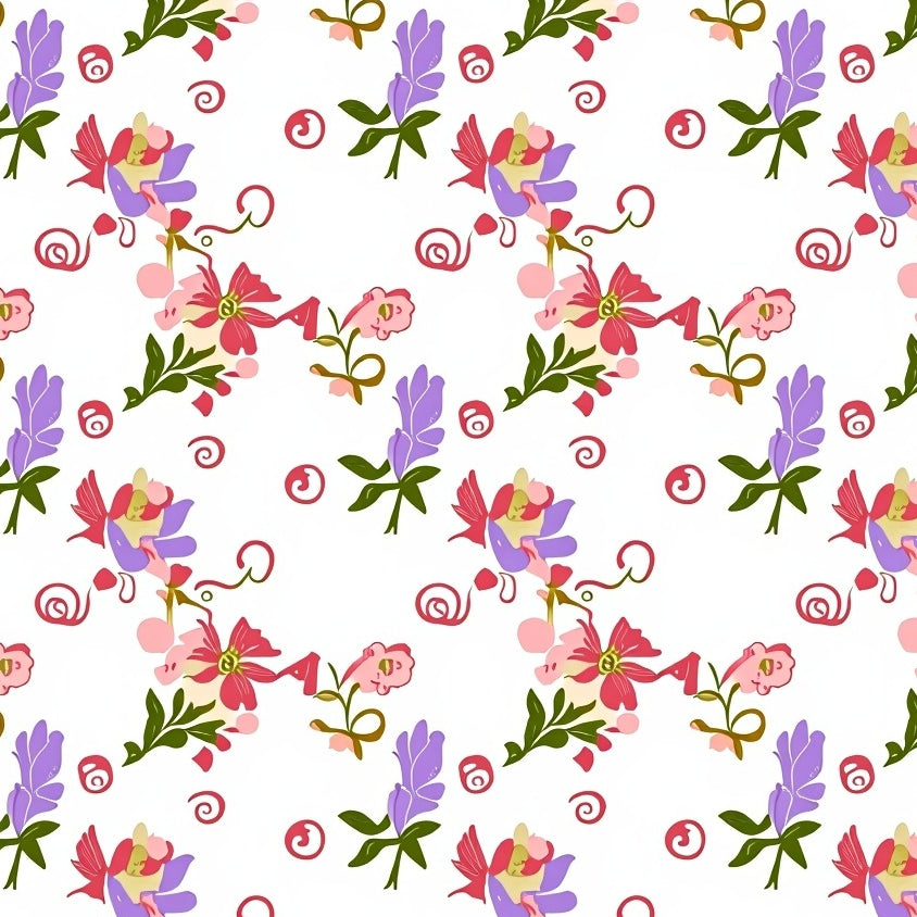 Elegant Floral Cascade Featuring Delicate Blossoms and Subtle Curlicues(Pink)