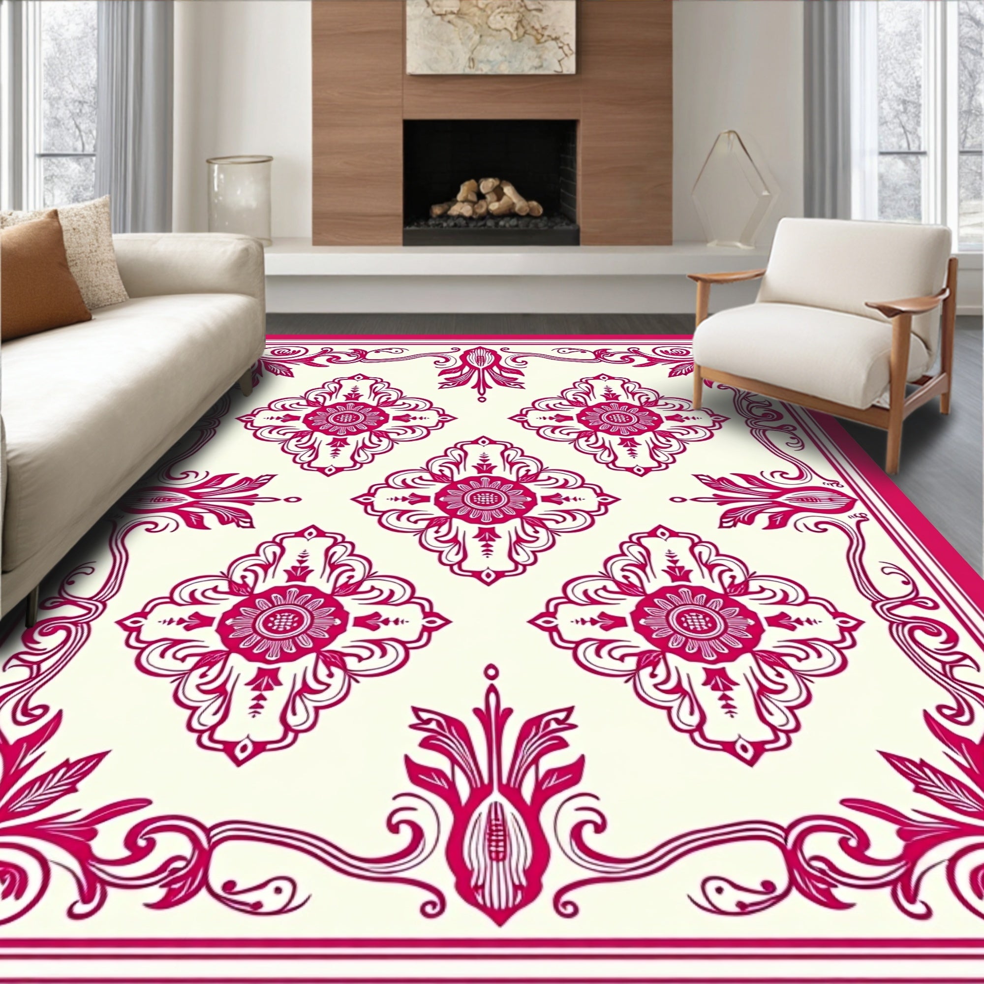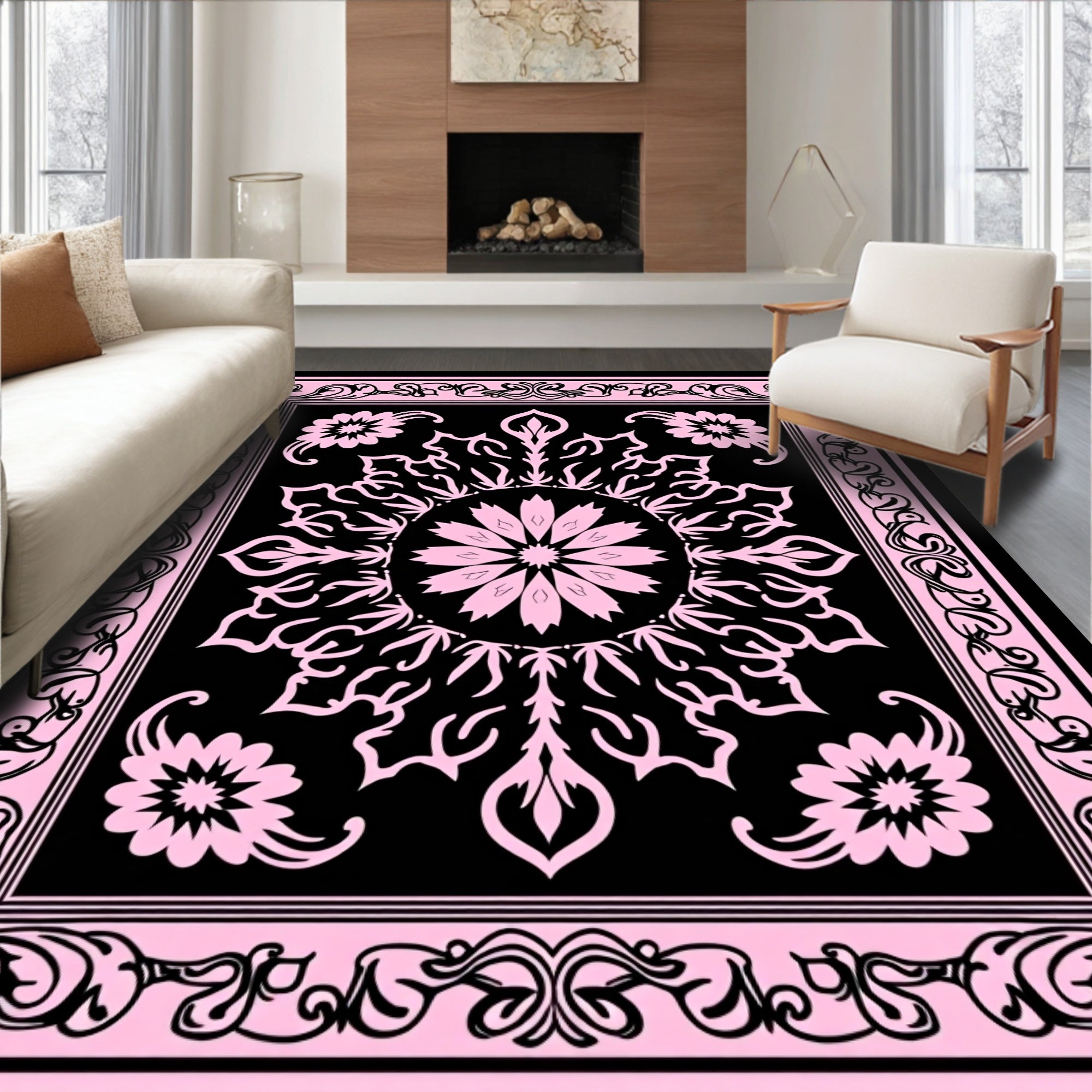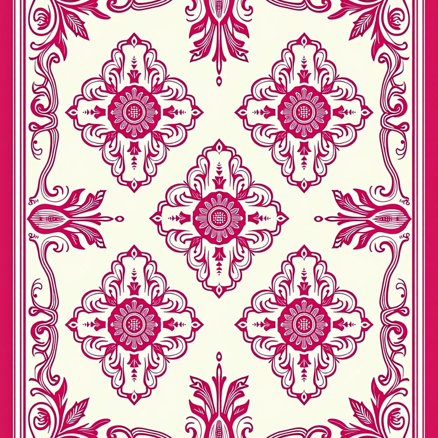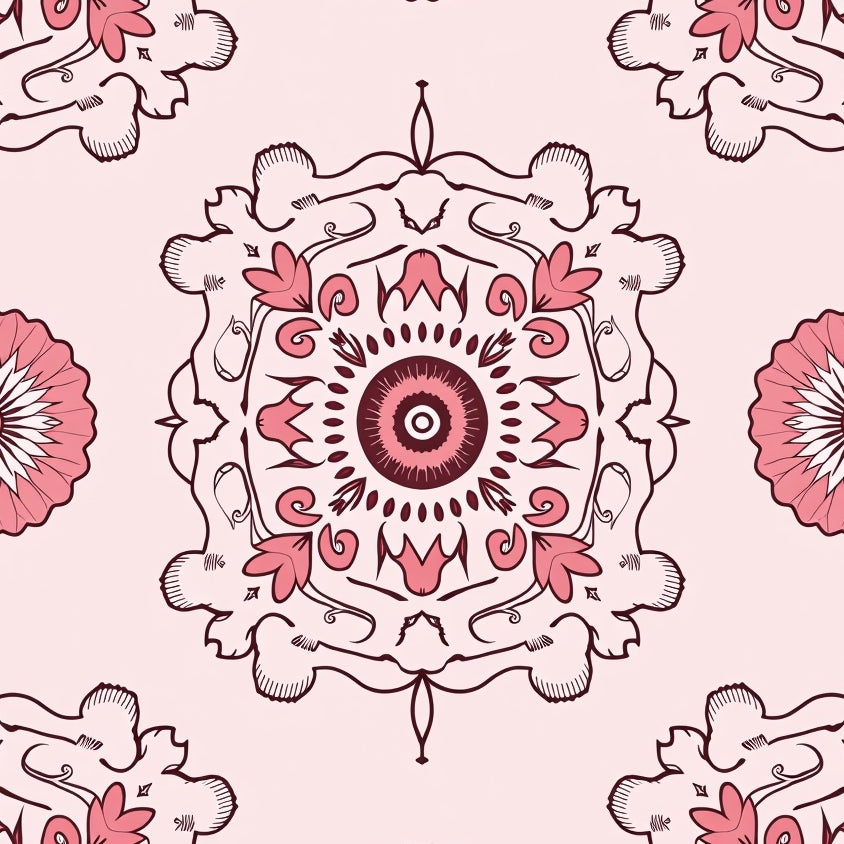 Elegant Medallion Floral Swirl Vintage Decorative Ornate Luxury Charm(Pink)