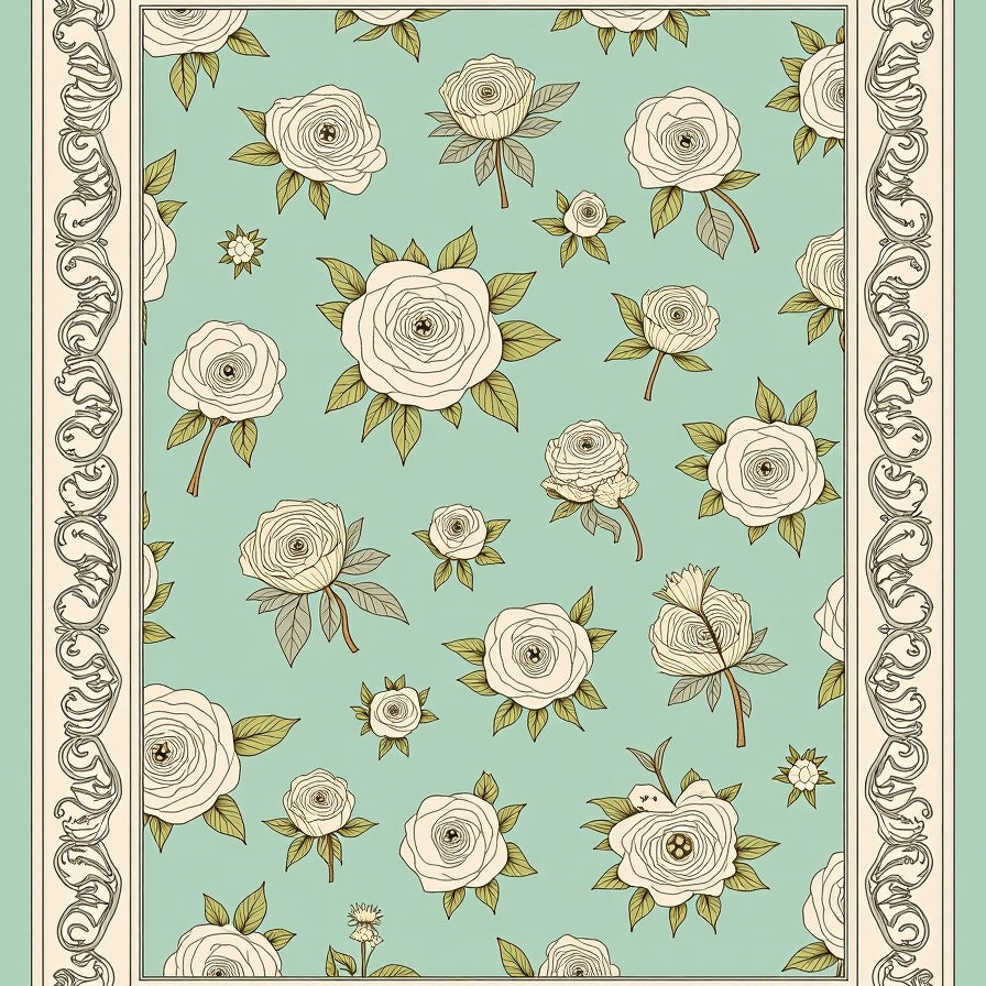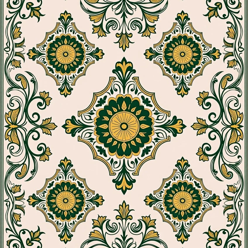 Vintage Botanical Scrollwork with Detailed Floral Medallions(Green)