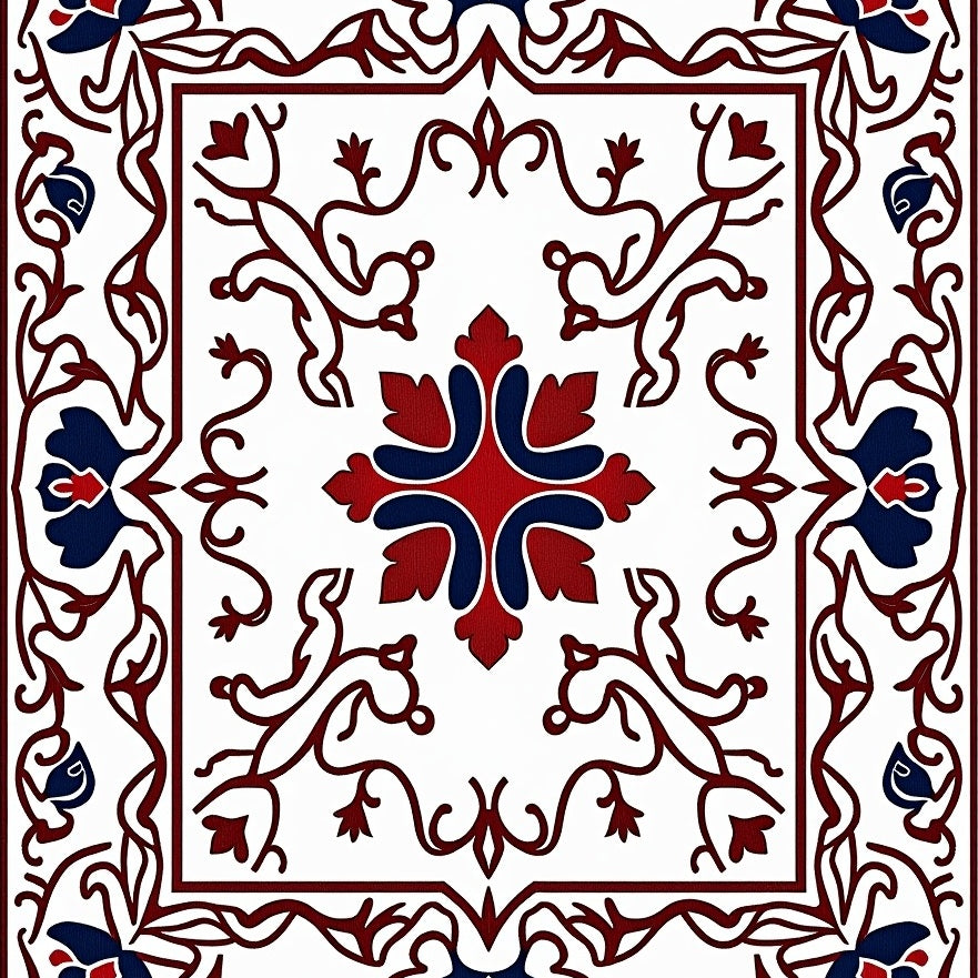 Modern Boho Mosaic Showcasing Abstract Interlocking Floral Tiles(Red)