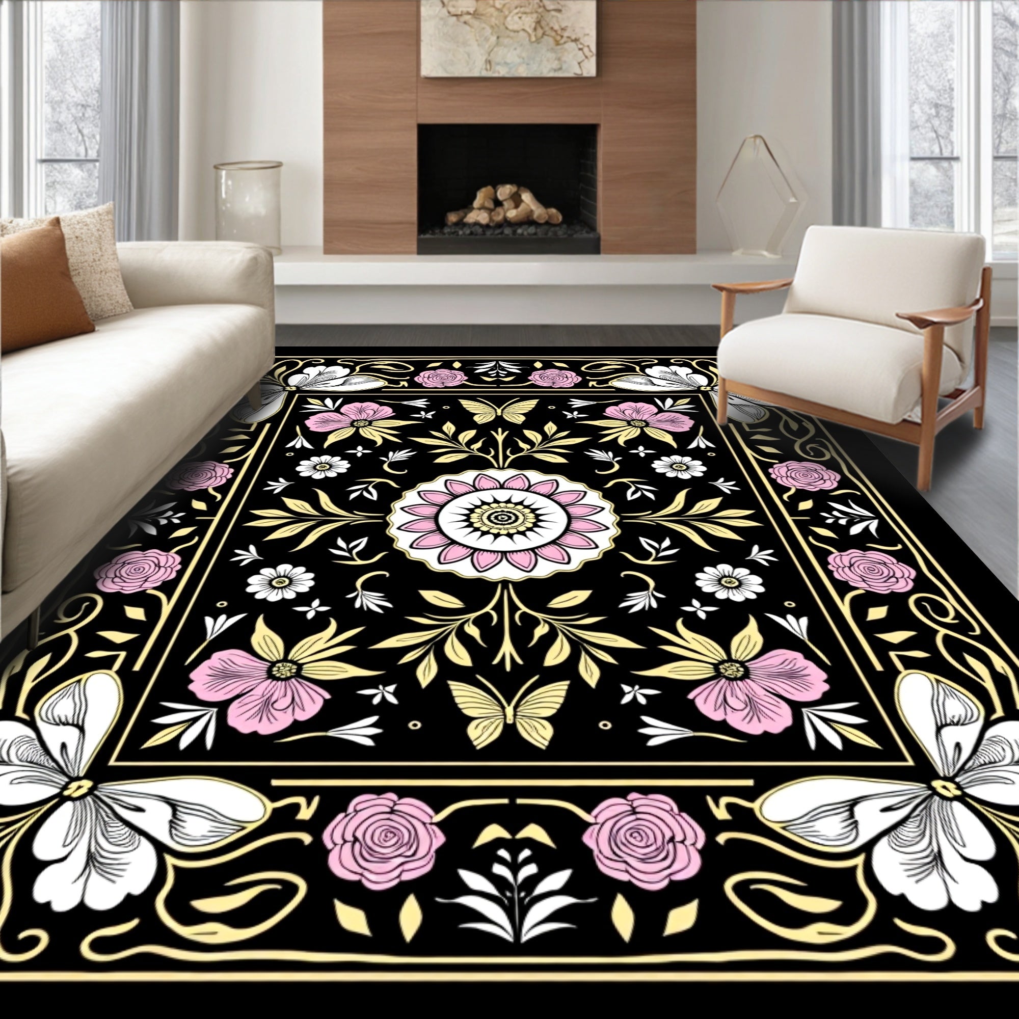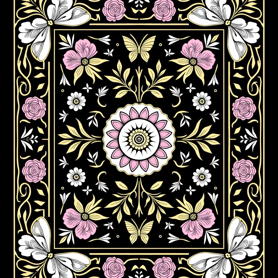 Enchanted Garden Decorative With Vibrant Floral Motifs(Black)