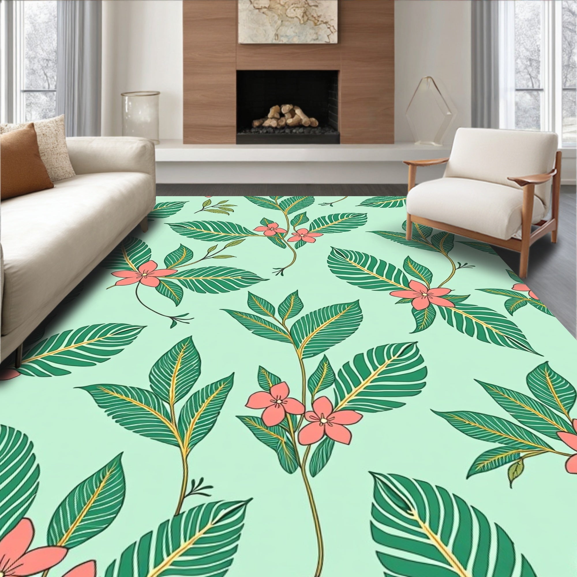 Artisan Crafted Floral Pathway with Vintage Charm Design(Green)