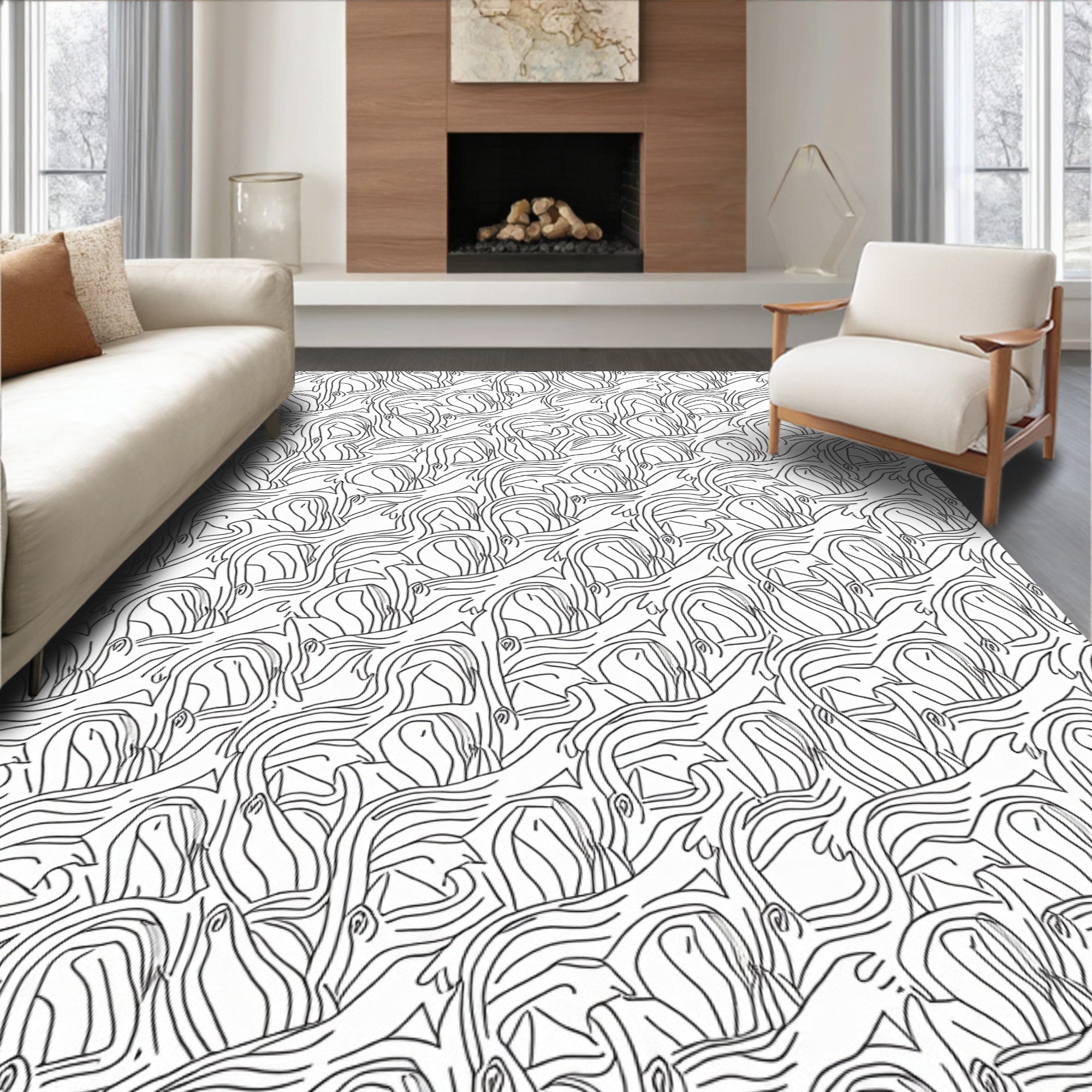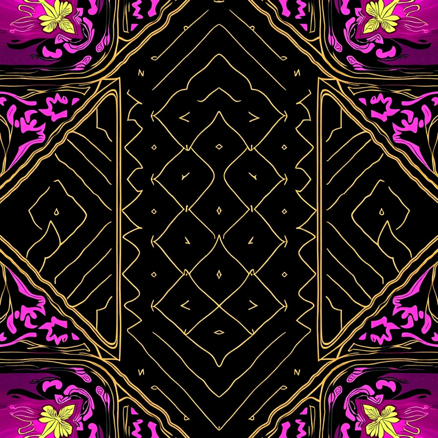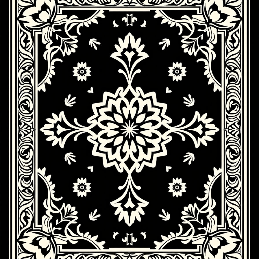 Modern Interlocking Lattice with Floral Burst Embellishments(Black)