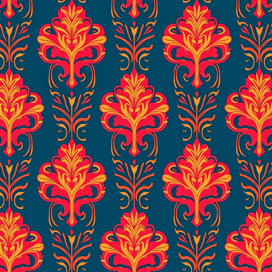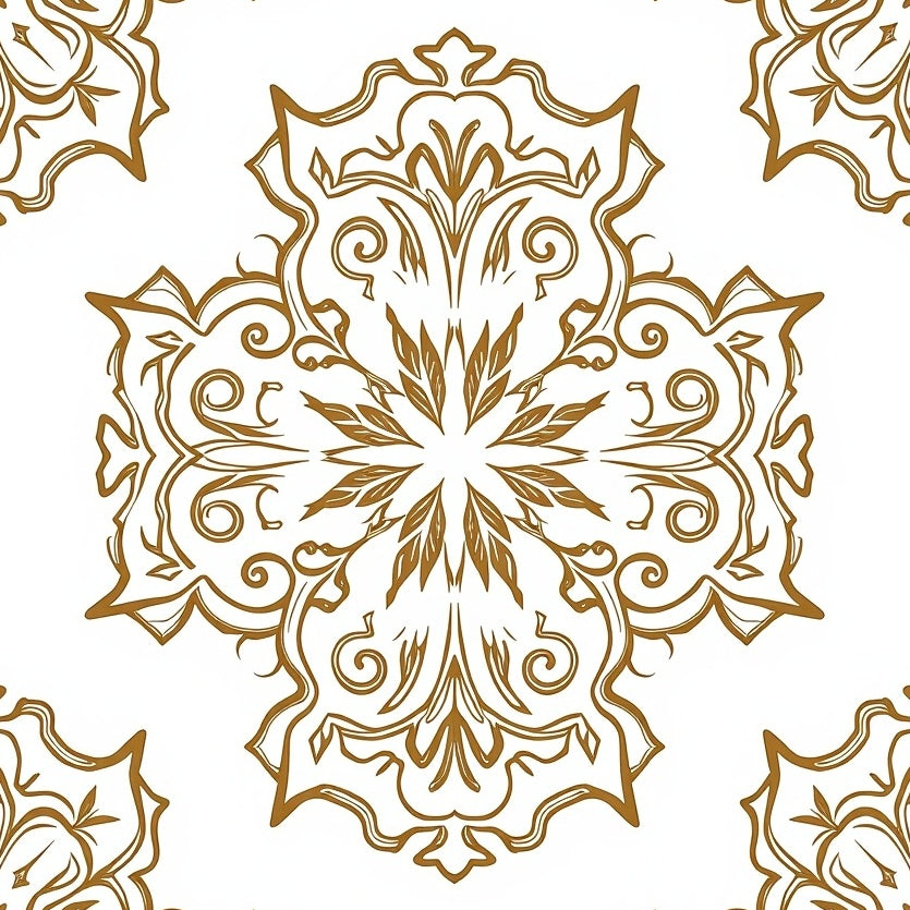 Elegant Damask Floral with Curvilinear Leaves and Subtle Vintage Etching(Gold)